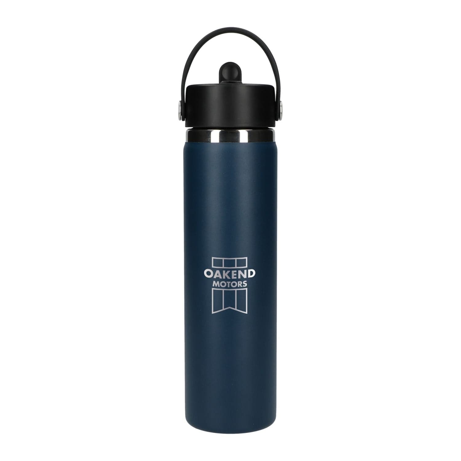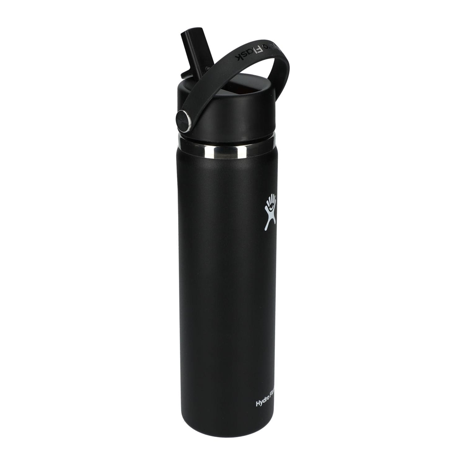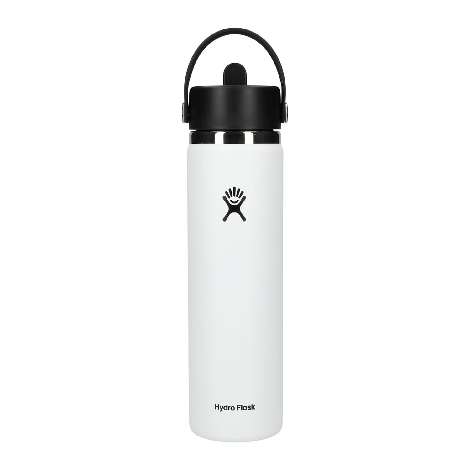 A 24oz Wide Mouth water bottle with Hydro Flask's leakproof Flex Straw Cap—easy to fill, easy to drink. Open it up, add your ice, and flip to sip. TempShield® double-wall vacuum insulation keeps drinks cold up to 24 hours. Insulated Flex Straw Cap is leakproof when closed. Made with 18/8 pro-grade stainless steel for durability, pure taste and no flavor transfer. Wide Mouth opening is ice-cube friendly. Color Last™ powder coat stays clean and bright. BPA-Free. Flex Straw Cap not intended for use with hot liquids. 24oz. Hand Wash Only.