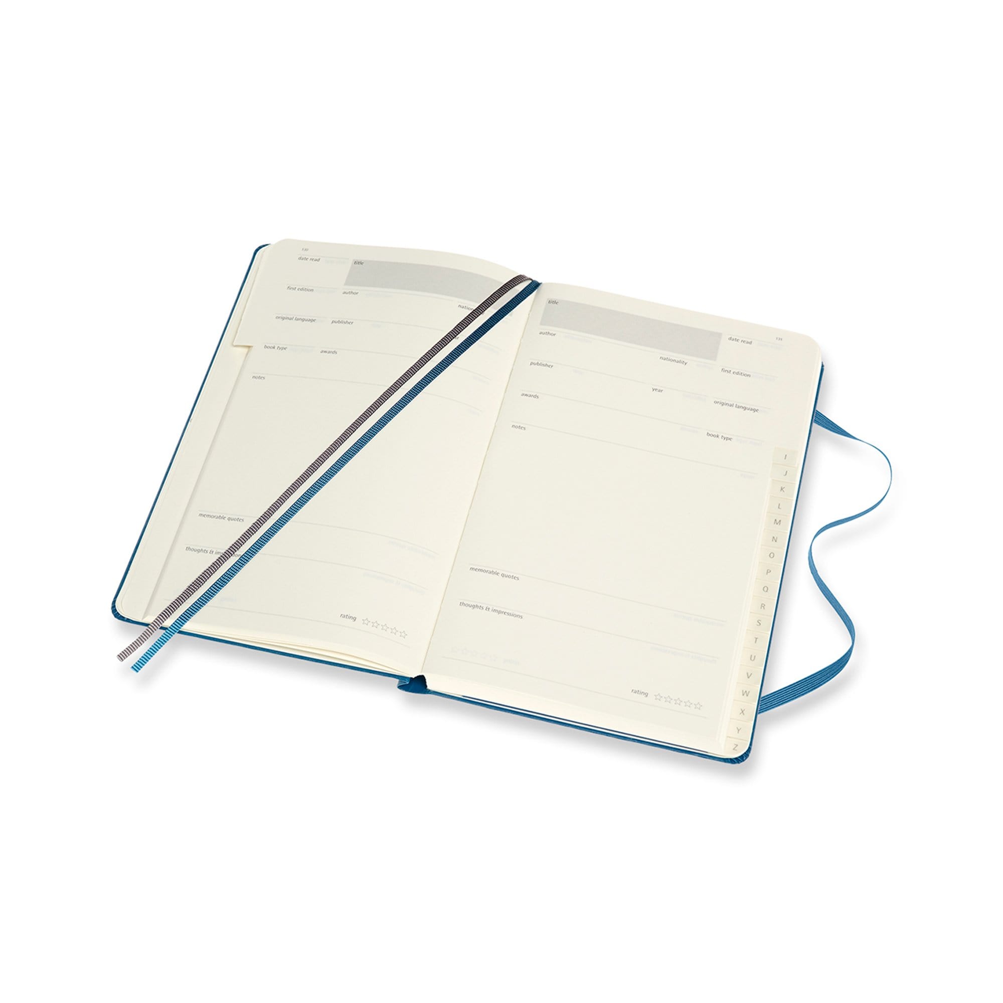 The alphabetized pages give you a structured space to note down key information about each book, alongside general reflections and the quotes or passages that made the biggest impression