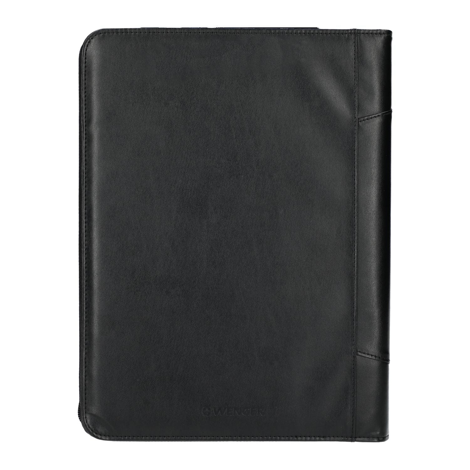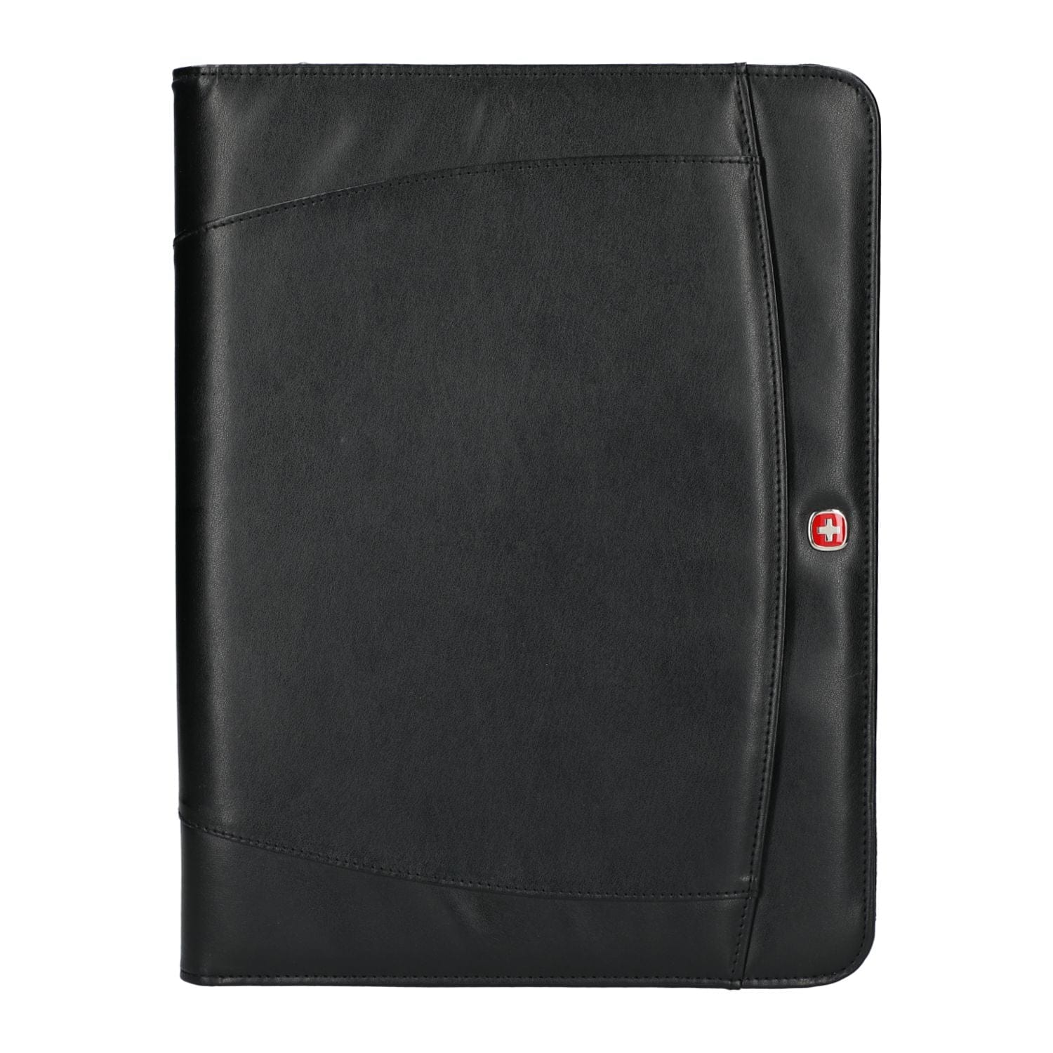 The Wenger Recycled Zippered Padfolio features a recycled PU cover material and 30 pages of recycled white lined paper. Interior includes gusset pocket, business card pockets elastic loops and pen loop. Includes white recycled gift box.