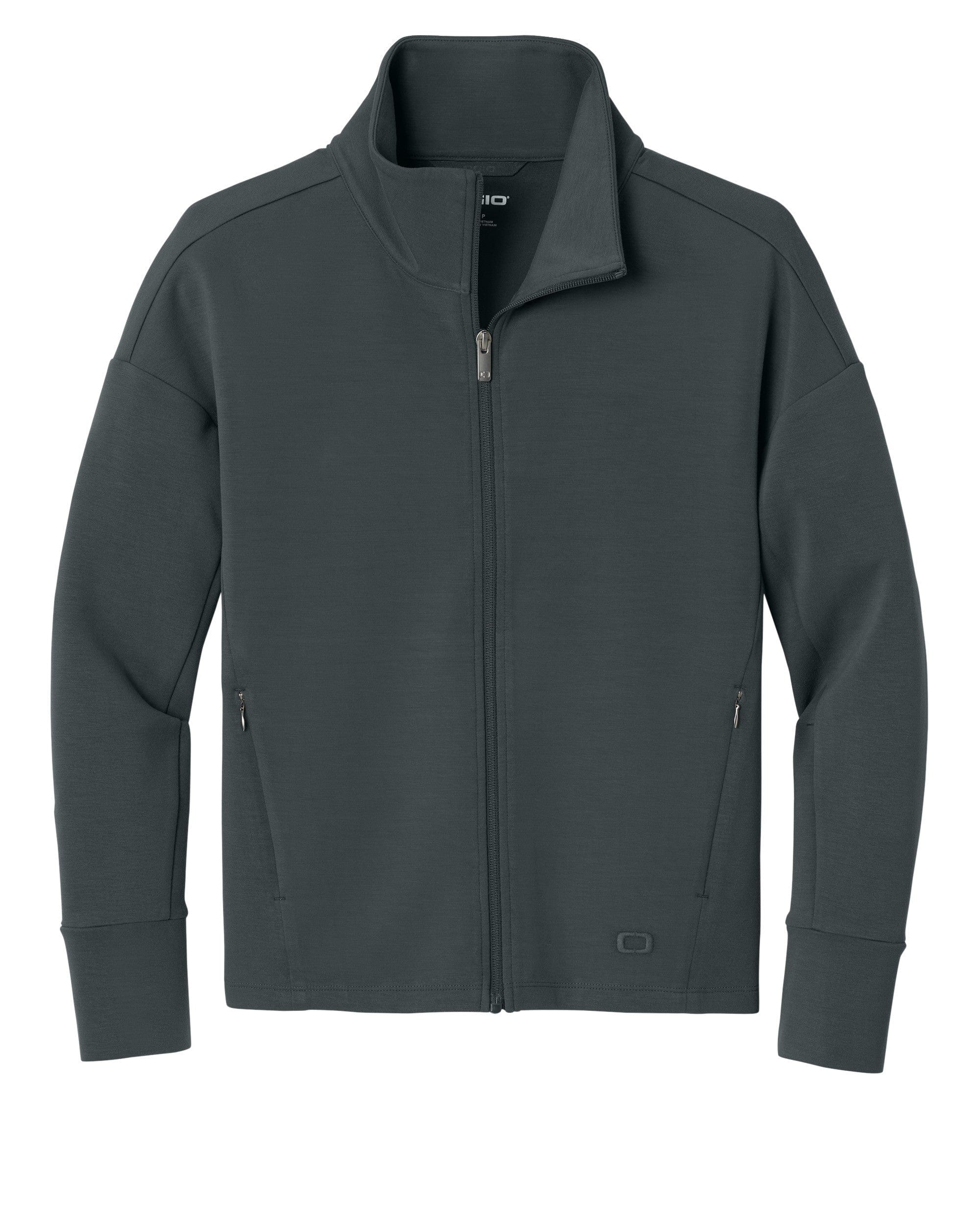Reverse coil zipper with debossed, brushed silver O icon pull