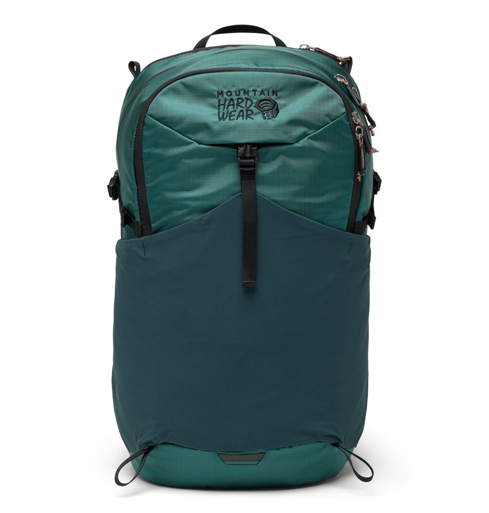 • Stretch woven front dump pocket with SR buckle closure and dual water bottle pockets