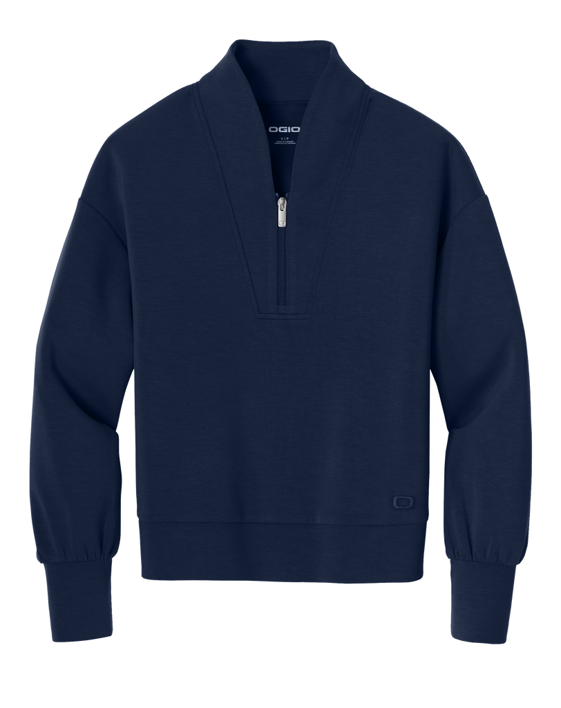 Reverse coil zipper with debossed, brushed silver O icon pull