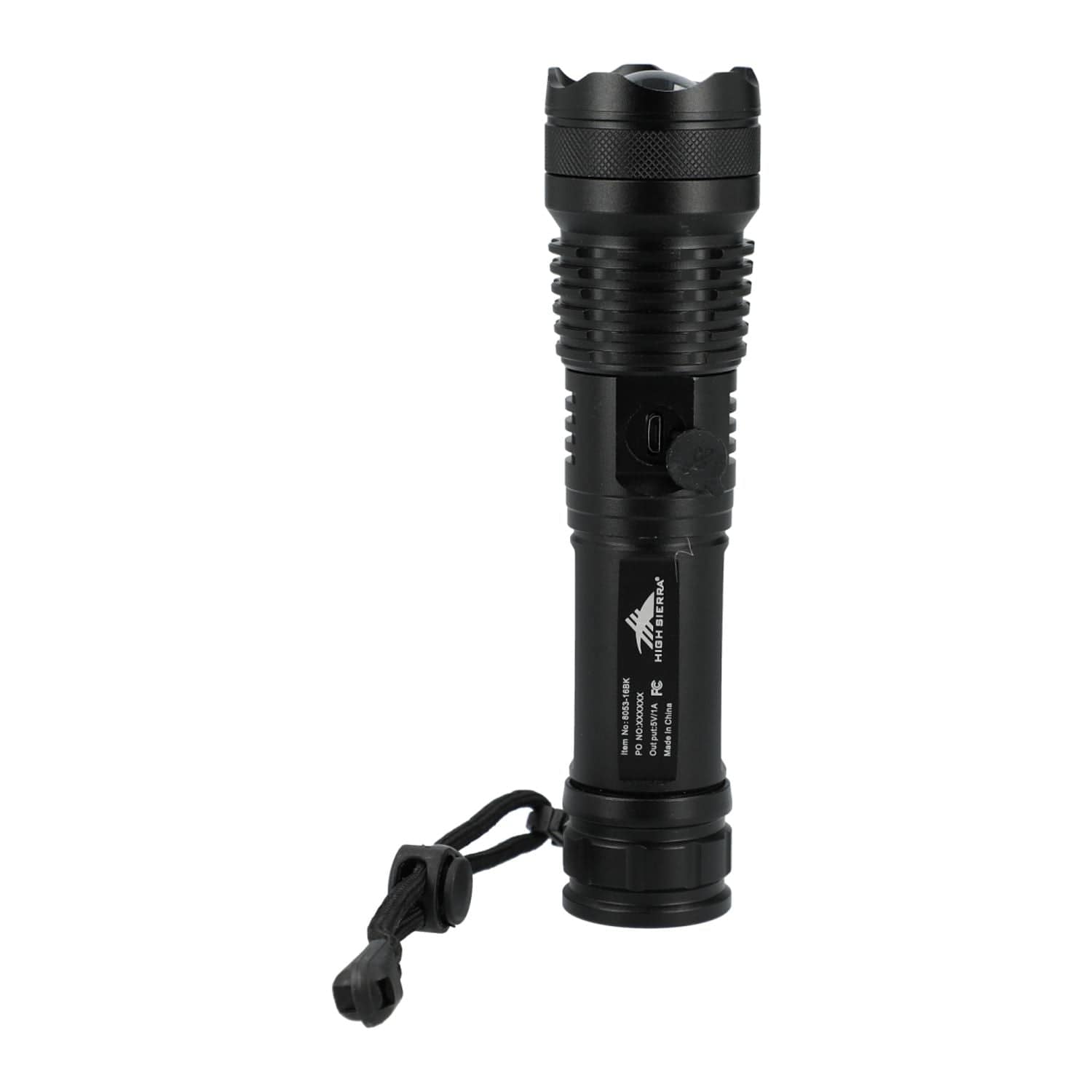 Discover the High Sierra® 200 Lumen Recycled Rechargeable Flashlight—a powerful and eco-friendly lighting solution designed to enhance your adventures while minimizing environmental impact. With a telescopic zoom and 5 versatile lighting modes including high, medium, low, fast flashing, and slow flashing, this flashlight adapts to your needs. Say goodbye to disposable batteries as it features a user-friendly micro-USB input port and arrives with a 7.87" charging cable for convenient recharging. Crafted from recycled aluminum, it's not only durable but also embodies sustainability. Packaged thoughtfully in an environmentally-friendly FSC certified natural gift box and accompanied by clear instructions, this flashlight is poised to illuminate your journeys with both power and eco-consciousness.