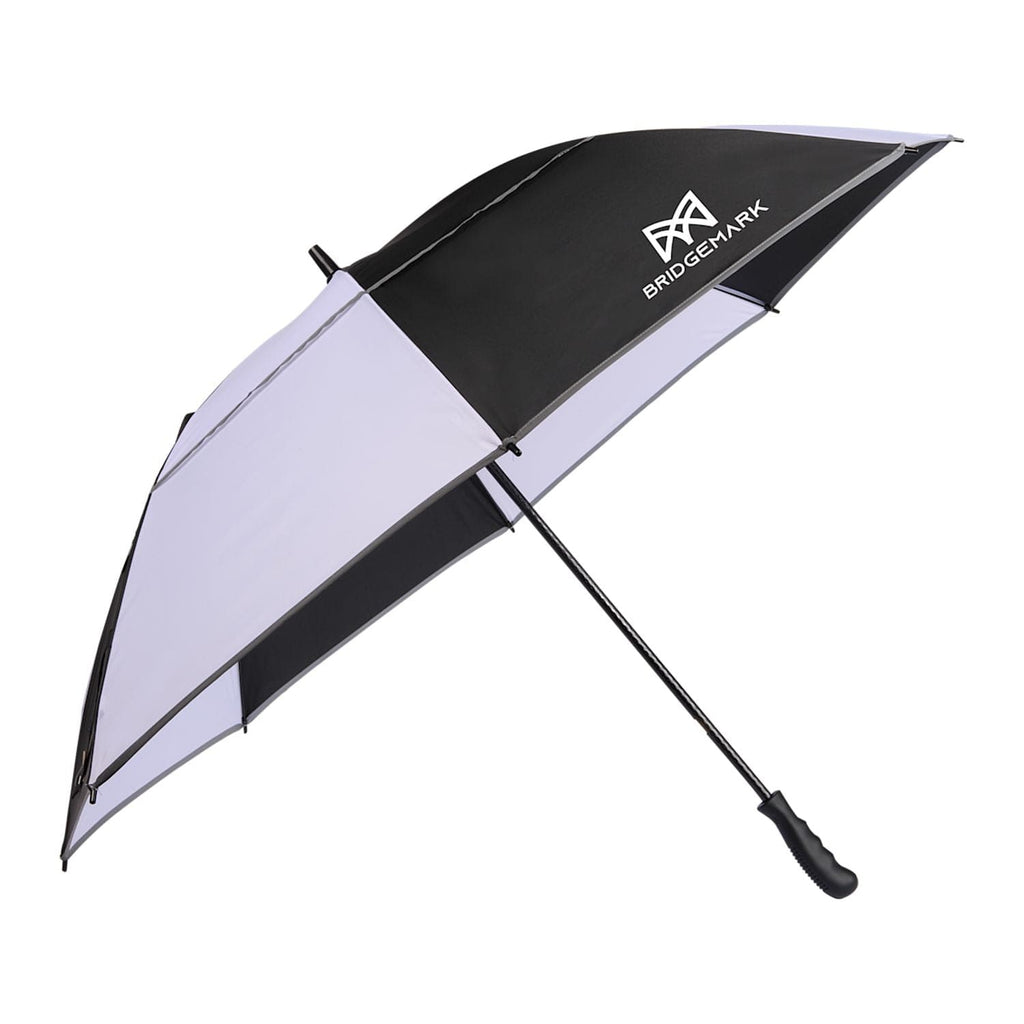 The 62'' RPET Golf Umbrella is great for on or off the course! The 62-inch canopy is large enough to comfortably cover two people. This umbrella stands out with it’s reflective trim, designed to increase visibility day or night. The canopy of this umbrella is made using recycled PET and is PFAS free.