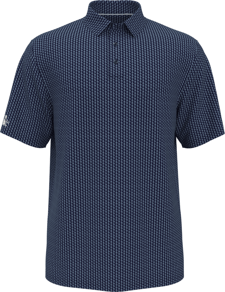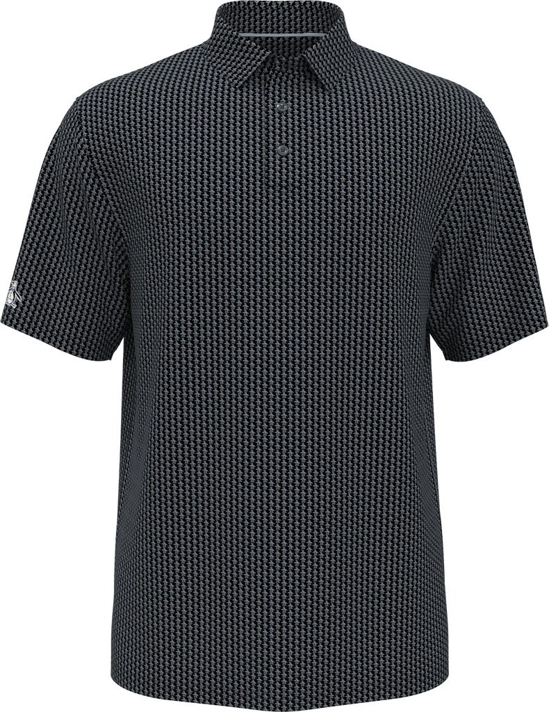5.4 oz. 30% Recycled Polyerster, 56% Dull Yarn Polyester, 14% Elastane. Right sleeve sticker PETE logo. Self collar. Open sleeve. 3-button placket.