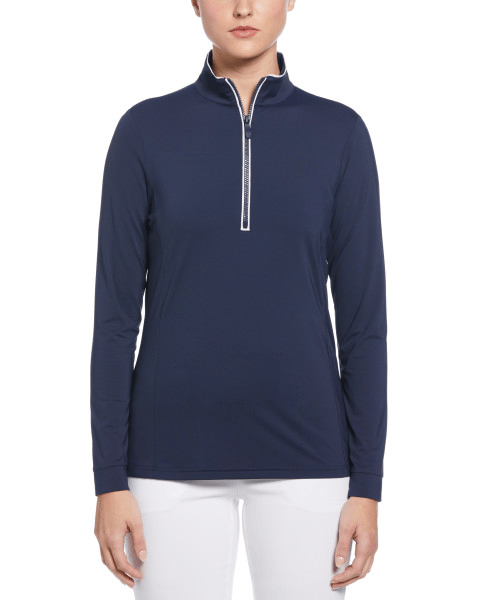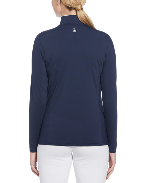 The Lightweight Veronica 1/4 Zip Pullover from Original Penguin is a performance-driven women's base layer designed to elevate your athletic endeavors. Crafted with a moisture-wicking blend of 83% Nylon and 17% Elastane, this pullover keeps you dry and comfortable, even during intense workouts. Its stretchy, single-knit construction offers unrestricted movement, allowing you to push your limits with confidence.