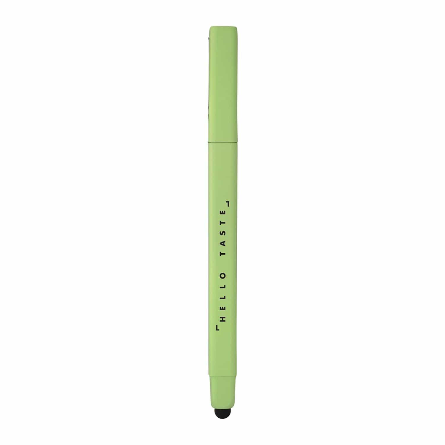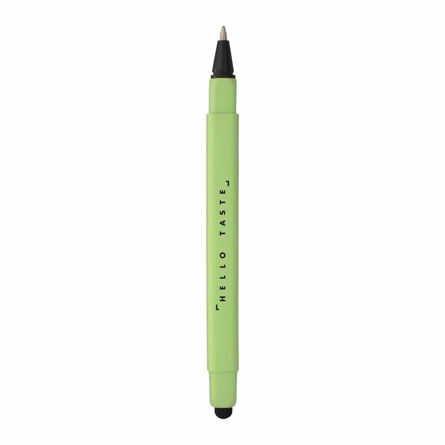 Includes ballpoint pen and soft rubber touchscreen stylus