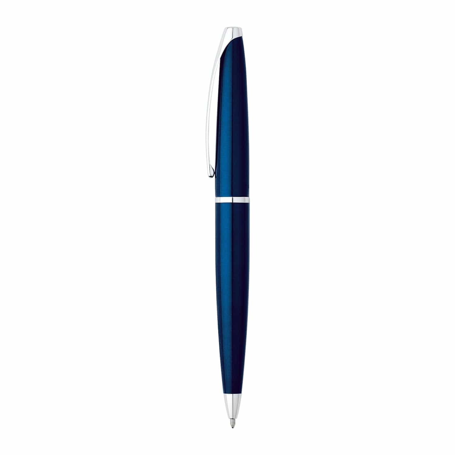 Take notes, write letters, and more with the Cross ATX Blue Lacquer Ballpoint. Part of the ATX Collection, this brass ballpoint pen has an ergonomic design to provide you with a comfortable grip for an enjoyable writing experience. With a brilliant blue exterior, a smooth-flowing black Cross ink cartridge, and a lifetime mechanical guarantee, this stylish pen is the perfect addition to any office or classroom. It ships in premium gift packaging, measures 5.47" L, and features a twist opening.