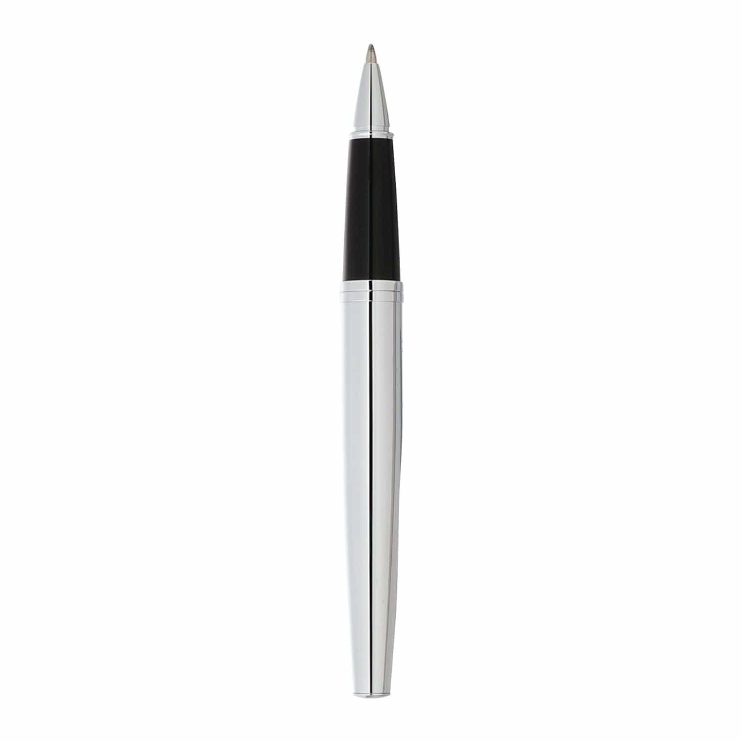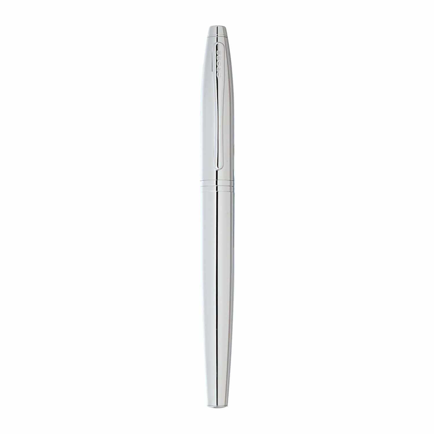 With Art Deco inspired lines and sophisticated finishes, the Calais Collection is an instant classic. Lightweight, sleek, with chrome accents and a bold profile, it brings a crisp, clean look to the table every time. Shiny chrome finish. Smooth gel black roller ball ink. Medium pen tip. Laser finish is shiny brass. Includes lifetime mechanical guarantee and signature Cross® gift box.