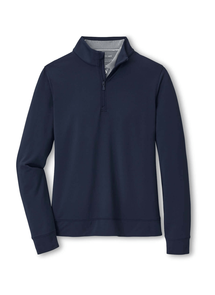 Peter Millar's signature performance pullover has been updated with a fresh new look. Made from a signature high-tech loop terry fabric, it offers four way stretch and moisture-wicking with a clean, classic sporty silhouette.