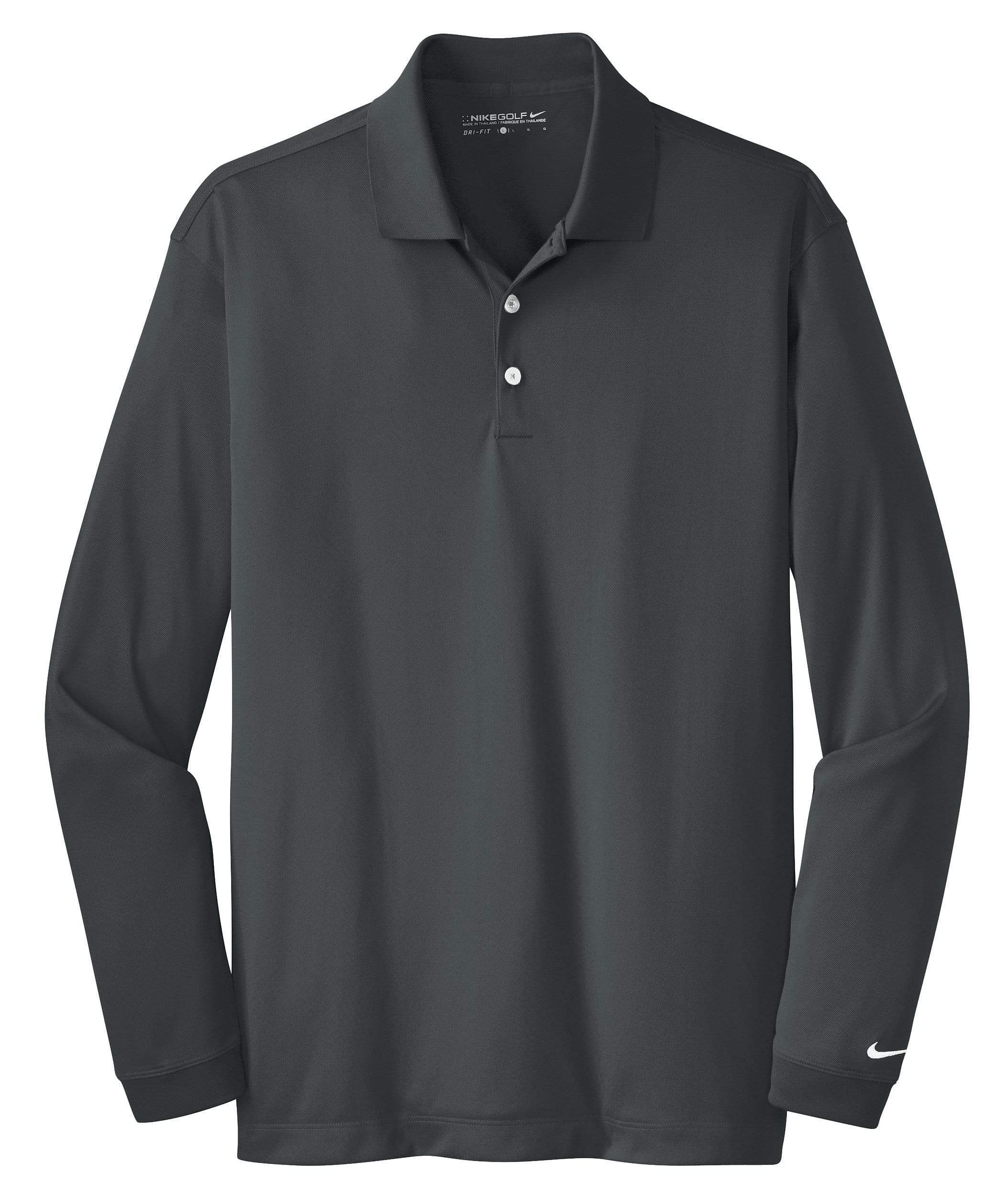 Long sleeves elevate this polo to another level of sophistication while Dri-FIT moisture management technology adds unparalleled performance. Stretch fabric for hassle-free swinging motion. Flat knit collar and cuffs. Heat transfer label for tag-free comfort. Three-button placket. Dyed-to-match buttons on White, Black and Midnight Navy. White buttons on Varsity Red, Anthracite and Blue Sapphire. The contrast Swoosh design trademark is embroidered on the lower left sleeve. Side vents. Made of 5-ounce, 100% polyester Dri-FIT fabric.