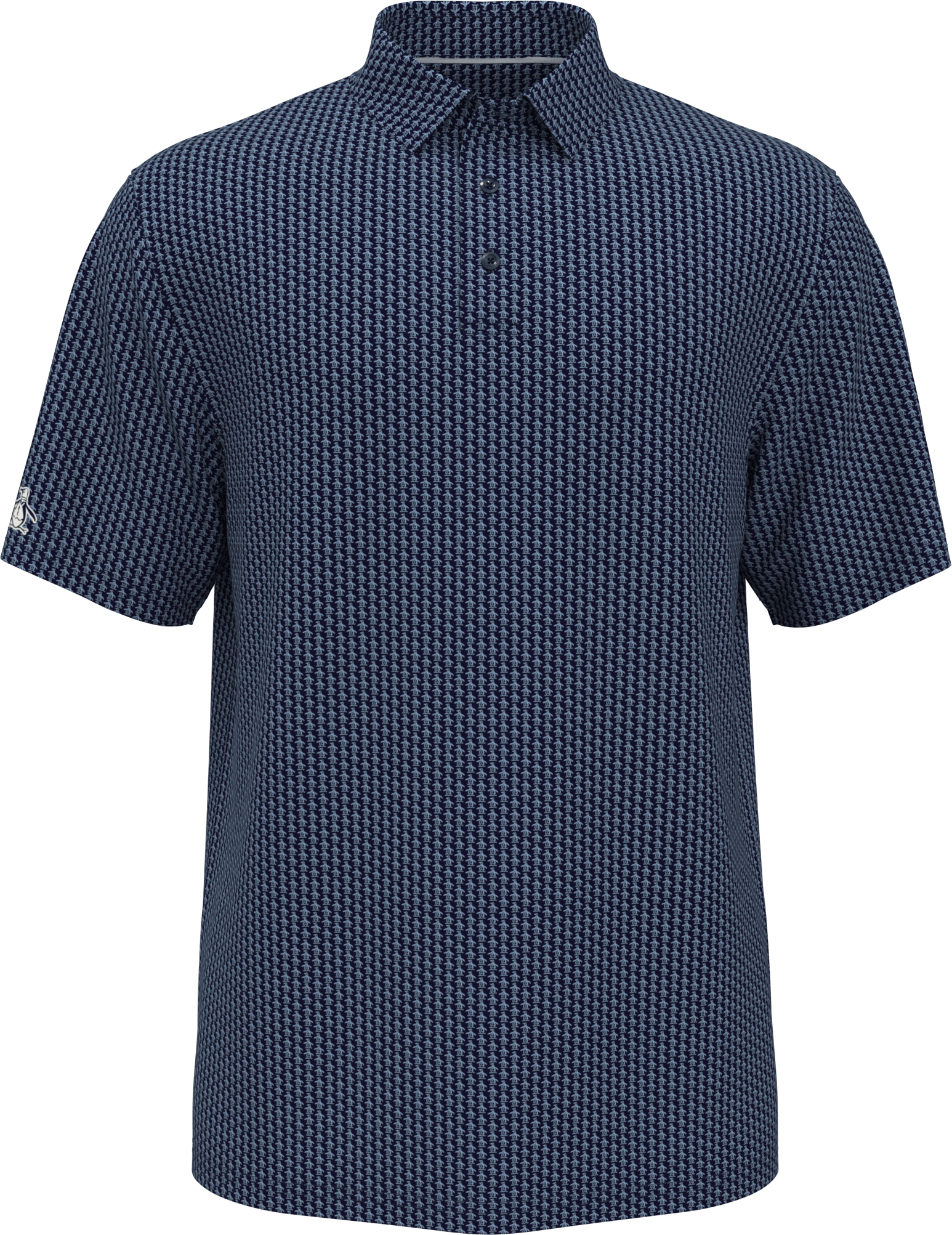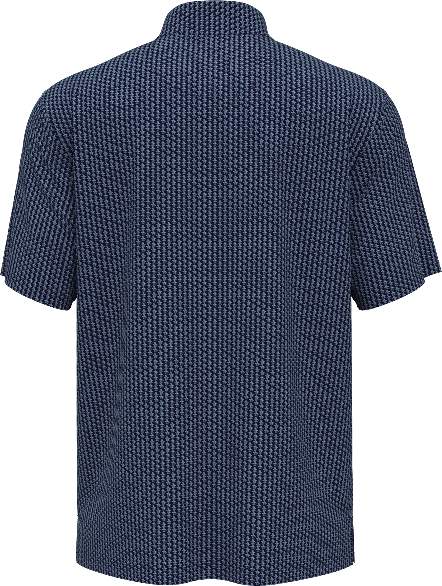 5.4 oz. 30% Recycled Polyerster, 56% Dull Yarn Polyester, 14% Elastane. Right sleeve sticker PETE logo. Self collar. Open sleeve. 3-button placket.