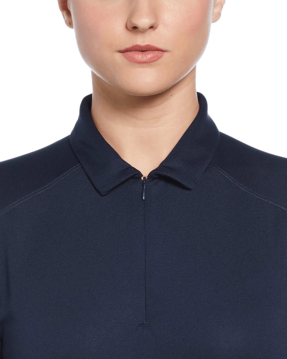 This PGA TOUR Apparel golf polo shirt for men is the perfect blend of style and comfort. This golf top is crafted with mesh fabric and features innovative ventilation and moisture wicking properties to help keep you feeling cool, dry and fresh from the first hole to the last. The classic, solid color design makes it easy to pair with your golf wardrobe for effortless style.