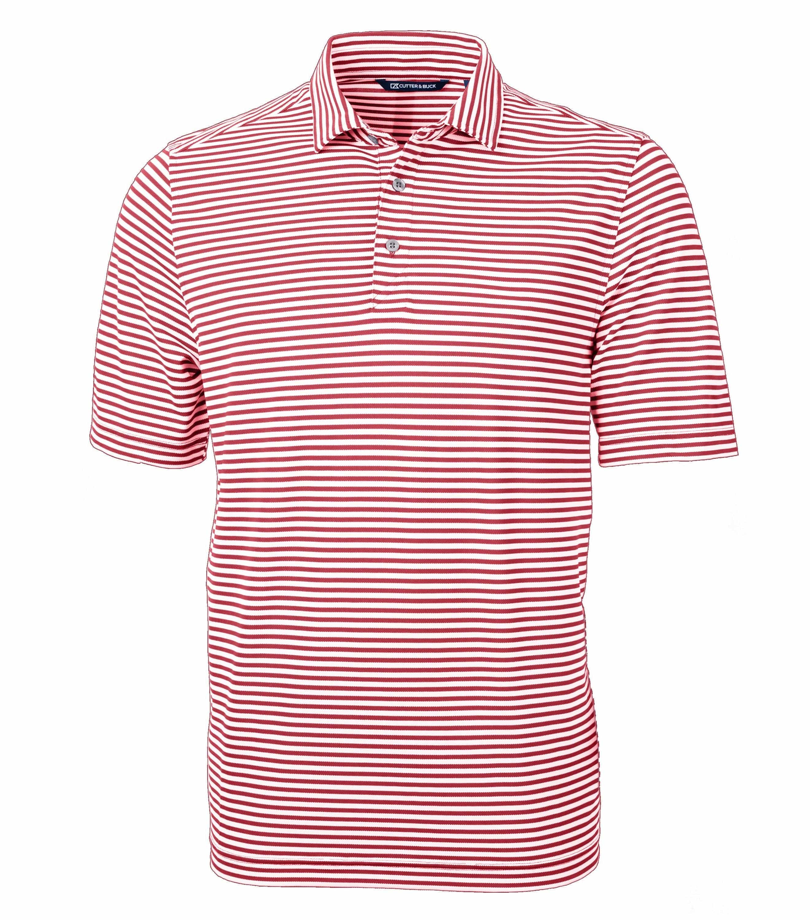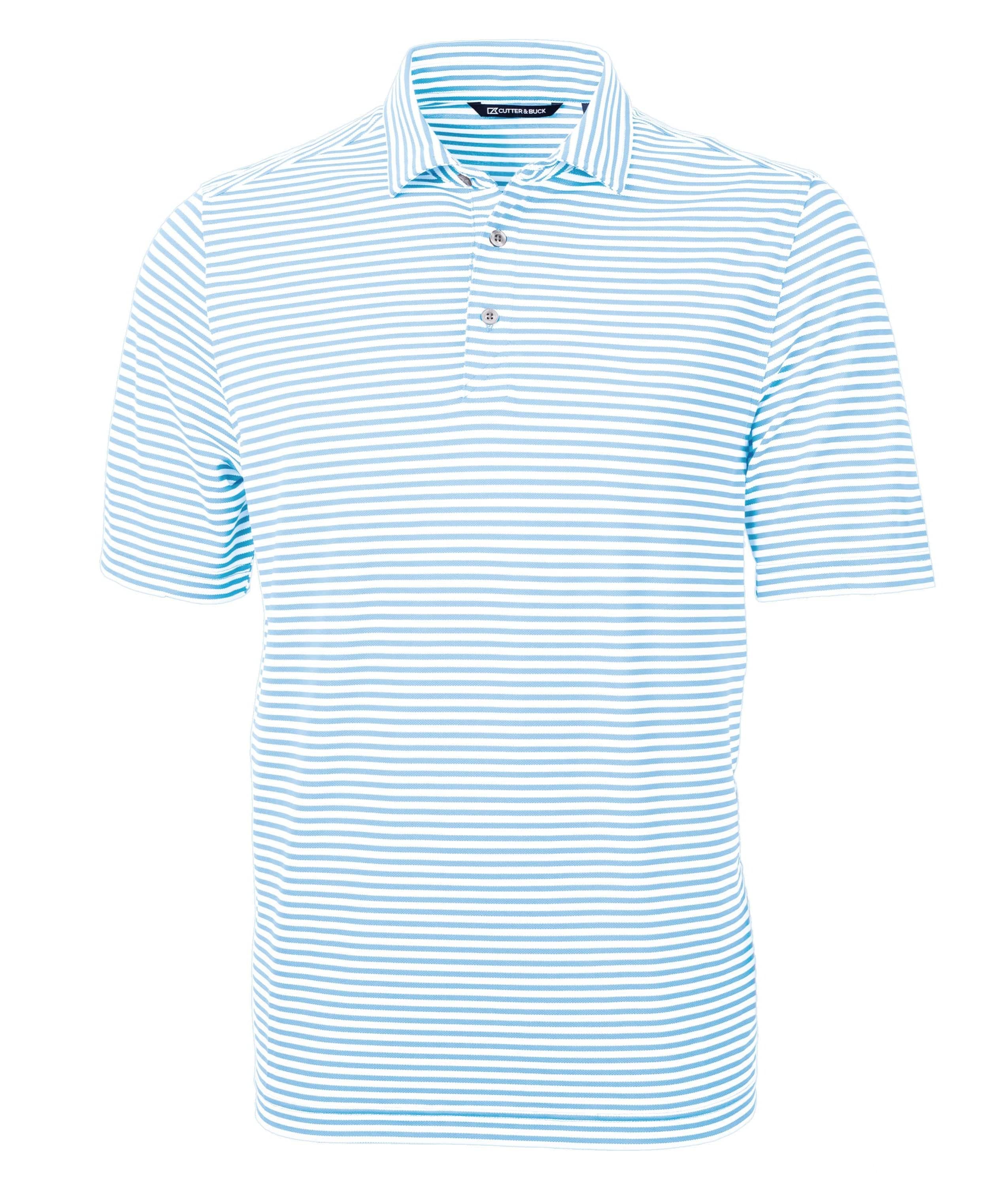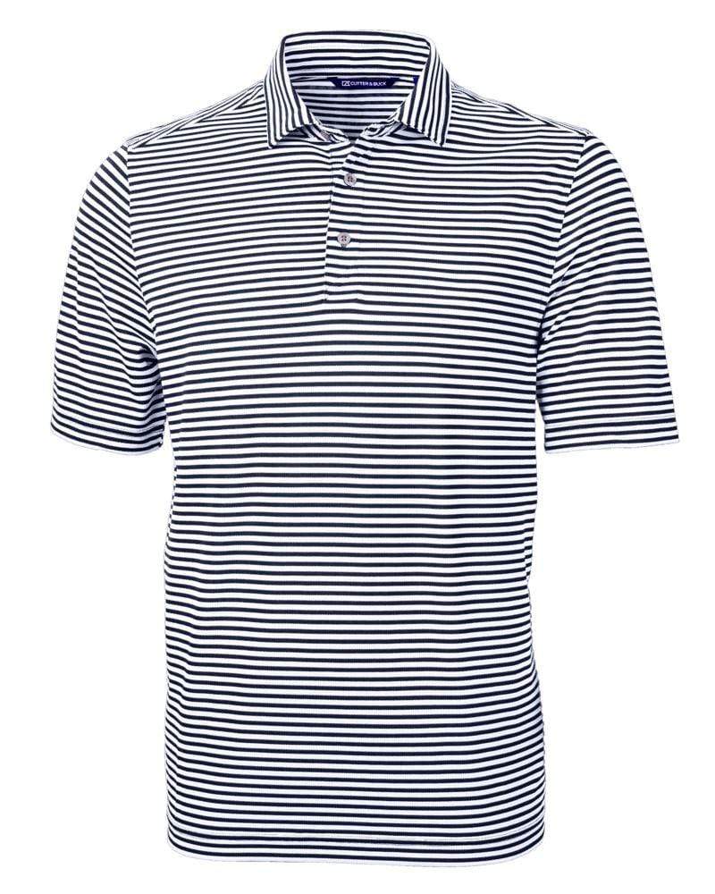 The iconic Virtue Eco Pique Stripe is engineered for exceptional versatility, designed to be your favorite sustainable mens striped polo shirt for golf, the office, WFH, travel, recharging, and for a night out. High quality certified eco-friendly recycled polyester is blended with drytec polyester and spandex for stretch, a cooling effect, and UPF sun protection, resulting in a versatile, sustainable, and comfortable striped polo for you and the planet.