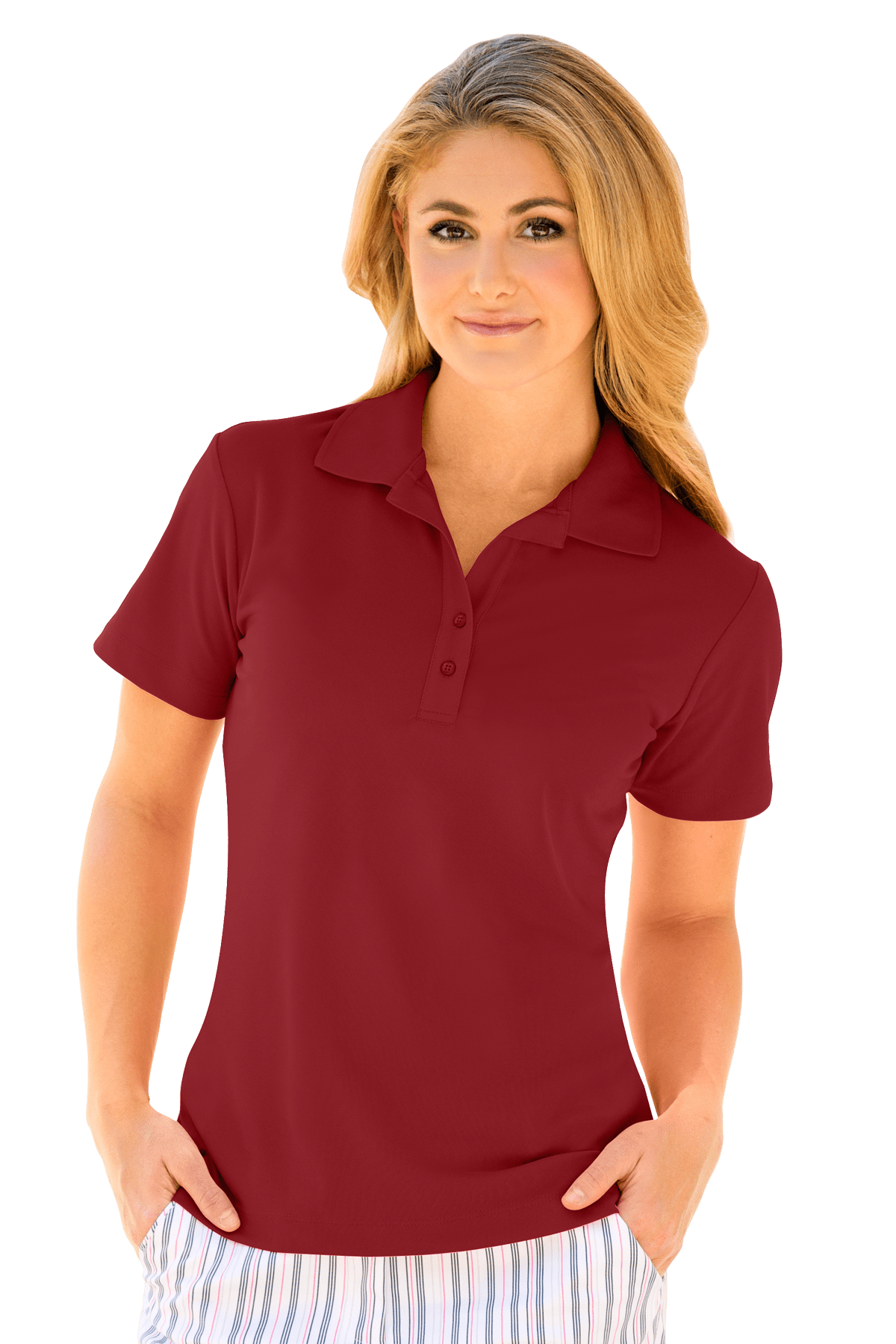 Scoring high for fit, fashion and function, the women’s Greg Norman polo is the perfect balance between sport and casual with Play Dry® moisture management capabilities, UPF 50+, a rib-knit collar with back neck aeration and shark logo embroidered at back neck.