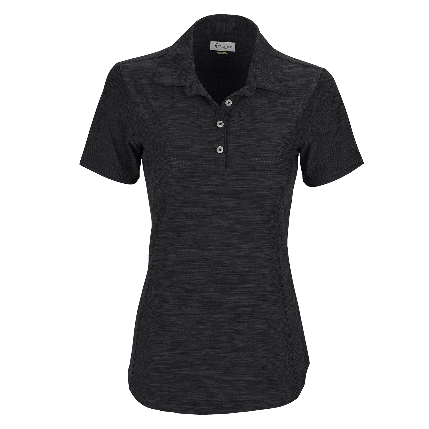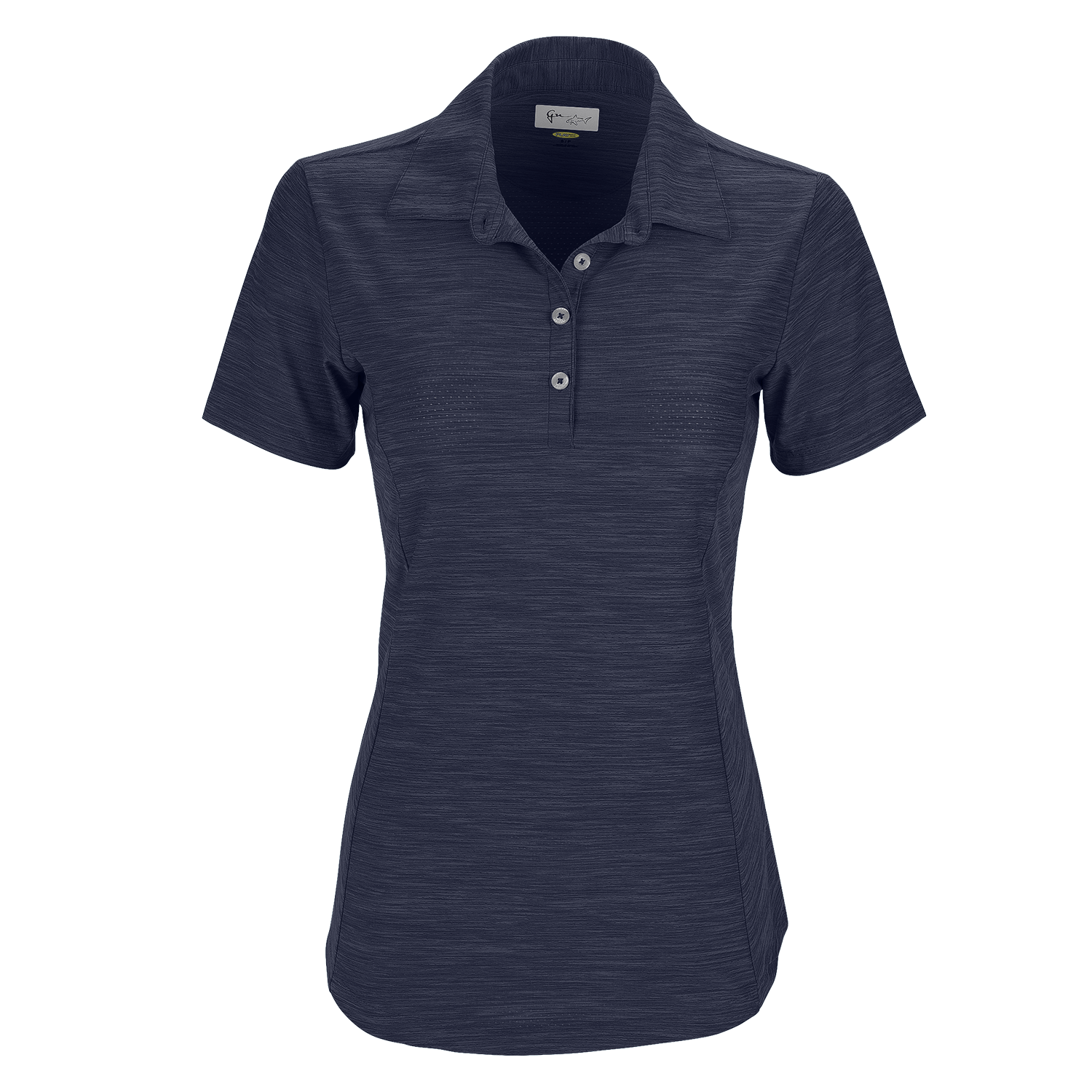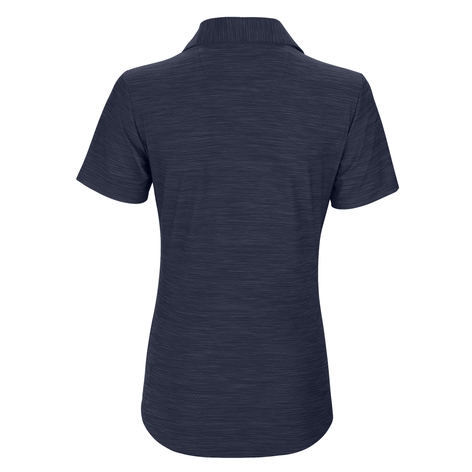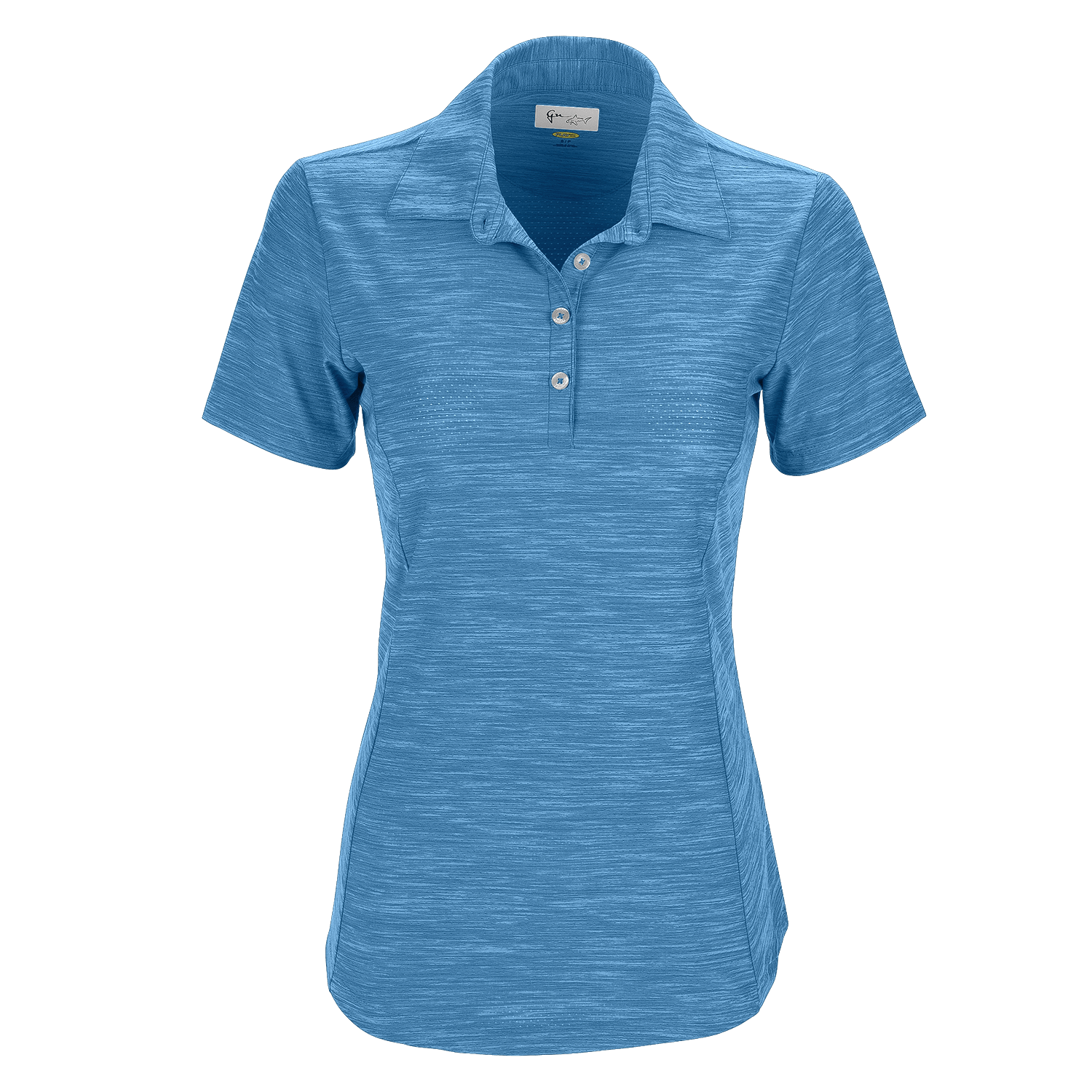 On par with the Pros, this silhouette features lightweight, heathered performance mesh fabric, a shaped body, shirt-tail hem for easy tucking or wearing out, and a flattering four-button placket. 90% polyester/10% spandex, 4 1/2 oz., Play Dry® moisture management, UPF 50+, self-goods collar, locker patch.