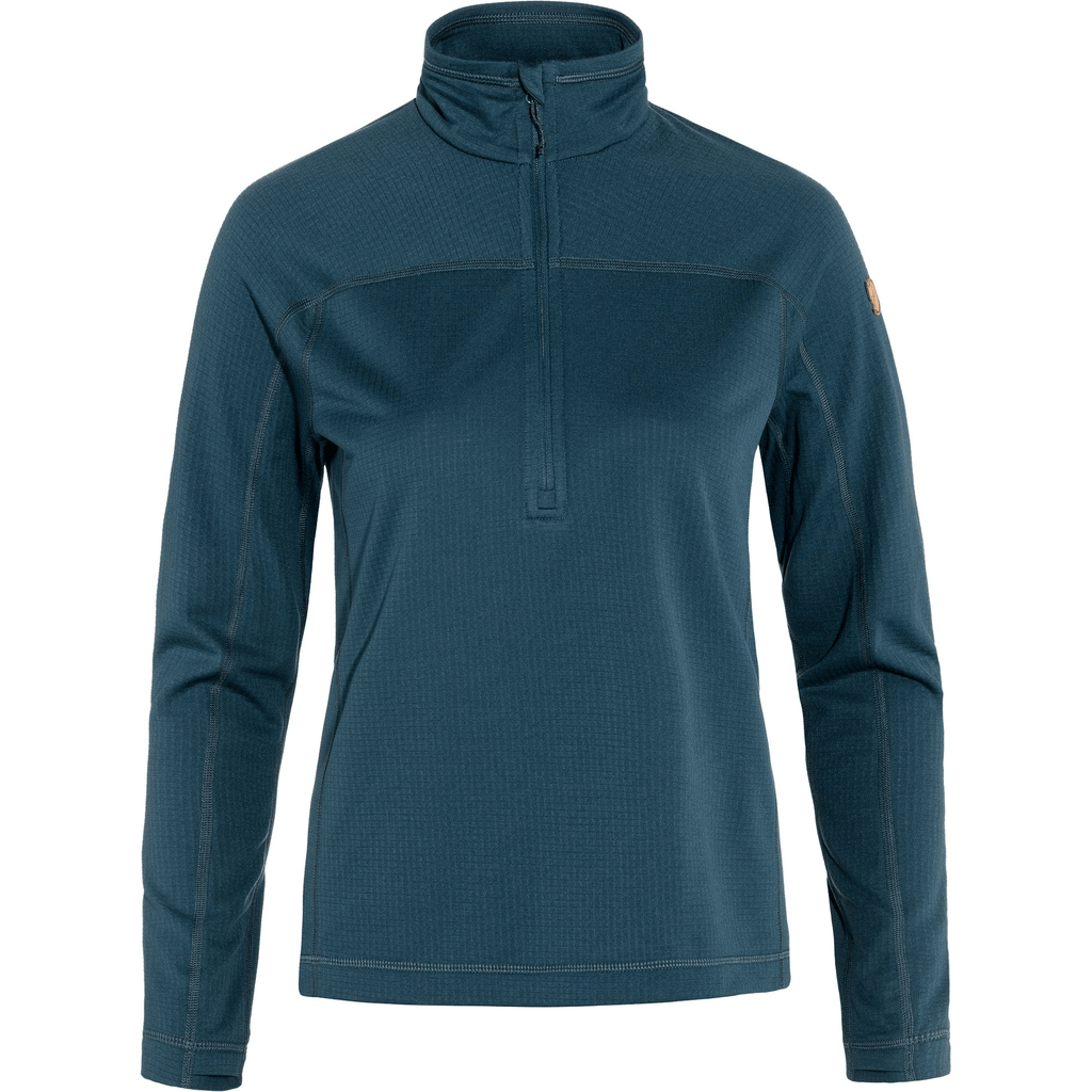 Light and comfortable fleece sweater with a half-length zipper – Abisko Lite Fleece Half Zip W is great to wear as a first or mid layer in warm climates. It is made from recycled polyester that transports moisture away from the body and dries fast. Regular fit with discreet thumbholes in the cuffs.