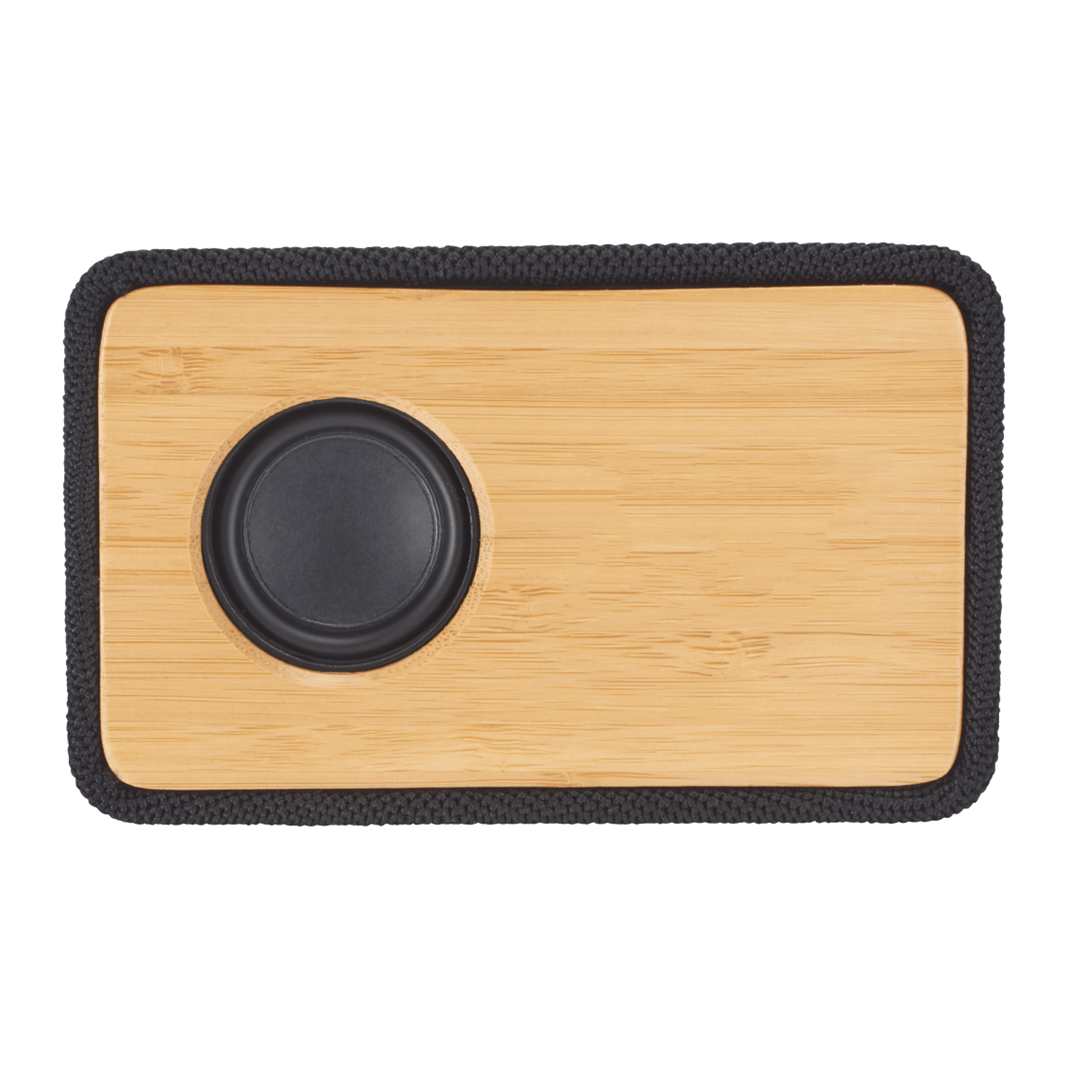 The Boundary Natural Bamboo Bluetooth Speaker contains a 2000mAh rechargeable lithium battery. It has a 3W speaker output and built-in music controls with a microphone for hands-free operation. This FSC Certified bamboo speaker comes in a retail-inspired gift box and includes a Micro USB charging cable. It charges in 5 hours using the included cable and provides up to 8 hours of playback at maximum volume when fully charged.