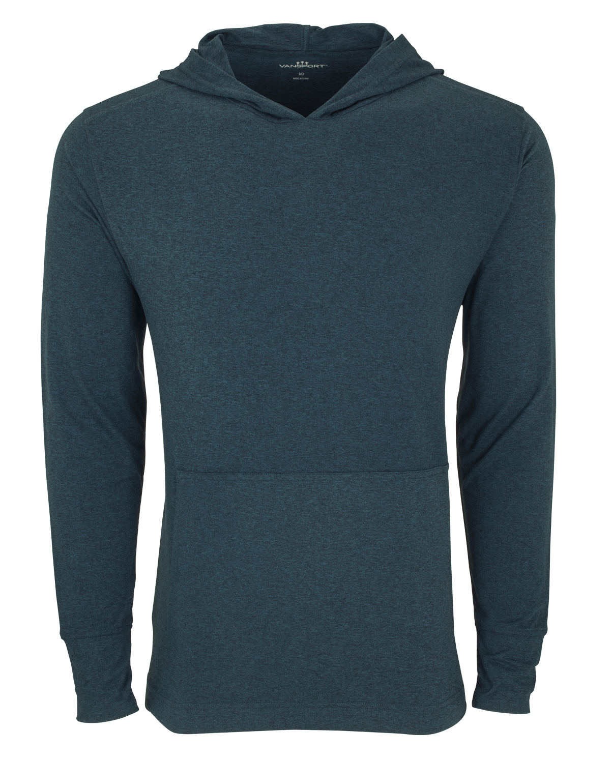 Get moving and do something good. Super comfy, performance Trek Hoodie uses Repreve premium recycled polyester made from discarded plastic bottles, 12 per hoodie, to lessen waste in landfills and oceans. 45% recycled polyester/45% polyester/10% elastane, 5 oz., heather jersey, moisture wicking, self-goods cuffs, kangaroo pocket.
