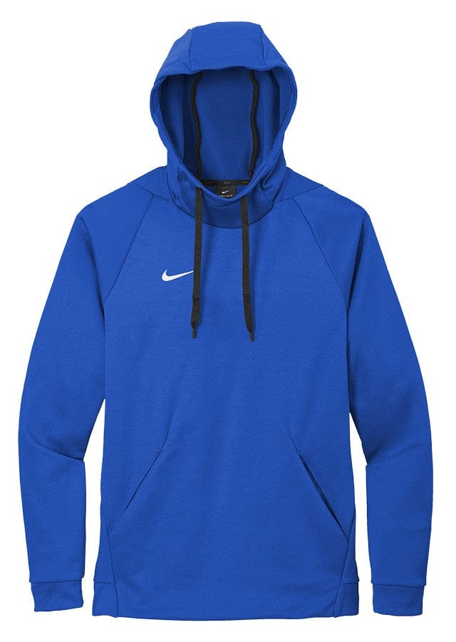 Nike has elevated the classic hoodie by improving this year-round essential with incredibly warm Therma-FIT fabric which breathes and manages moisture. The design includes a three-panel hood, front pouch pocket and open cuffs. The contrast heat transfer Swoosh design trademark is on the right chest. Made of 7.4-ounce, 100% polyester Therma-FIT fabric.