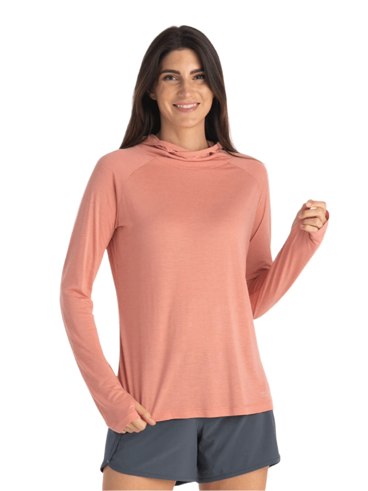 The Bamboo Lightweight Hoodie II is the second generation of this women’s style, now with an updated and super dialed fit. This buttery soft and lightweight layer is built for long days on the water—equipped with a crossover hood and thumbholes for ultimate all-day sun coverage. Incredibly breathable and naturally odor-resistant, it offers a UPF 20+ rating so you can comfortably handle any warm-weather adventure. Pair it with our Cropped Breeze Pant for all-over sun protection when shade is hard to come by.