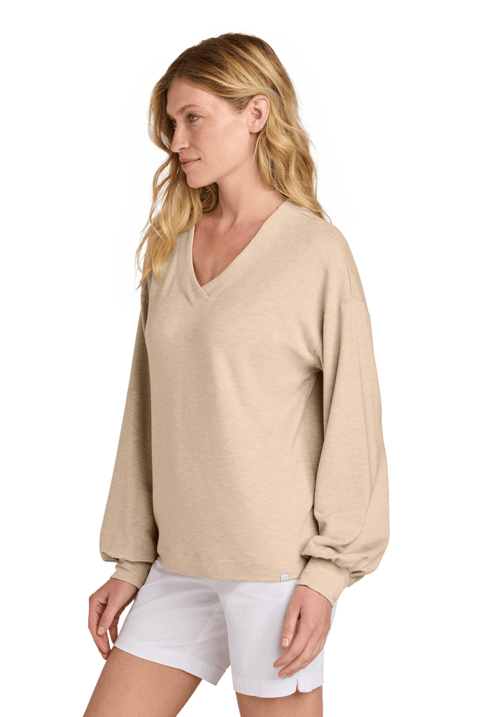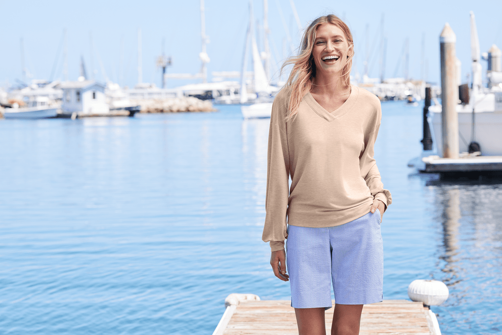 Remember that long weekend feeling any day of the week in this versatile, comfortable V-neck that can be worn at work or while hanging out.