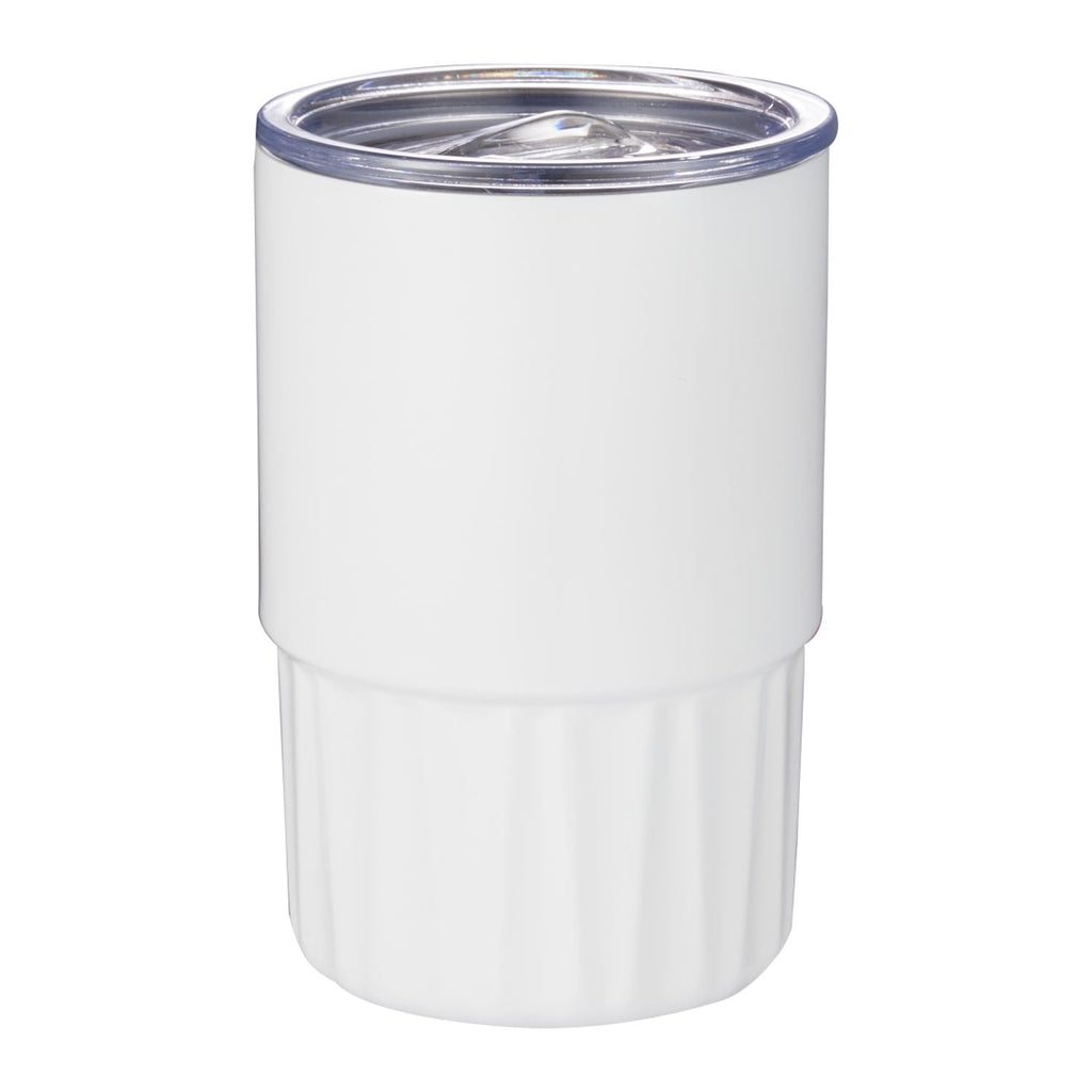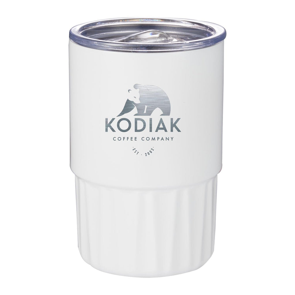 An elegant glass-like prism effect inside the tumbler, enhanced by the see-through lid with same prismatic design evokes the facets of a flawless diamond. This unique tumbler allows you to enjoy all types of beverages, from liquor to coffee, or even an ice cream sundae! Double-wall vacuum insulation with copper plating ensures that your favorite craft drink, latte or mocktail stays ice cold until the very last sip. The construction also prevents condensation on the outside of the tumbler. On-trend coating. Wide opening for easy filling, cleaning and adding ice. Fits most standard car cup holders. Hand wash only. 16oz.