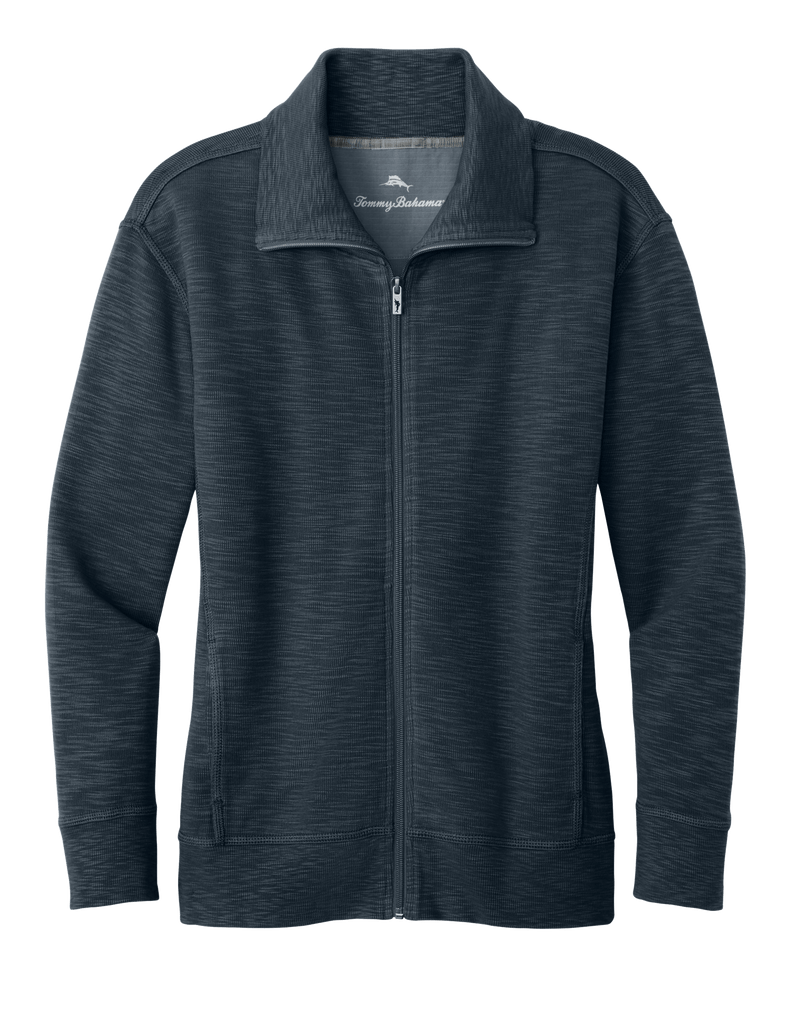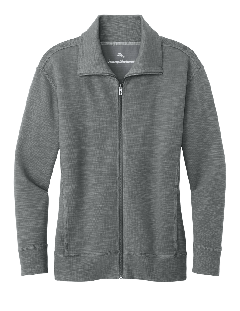 A fashionable sweater alternative, you’ll always look pulled together and sophisticated in this comfortable full-zip that features a slub texture knit and sun-bleached wash.