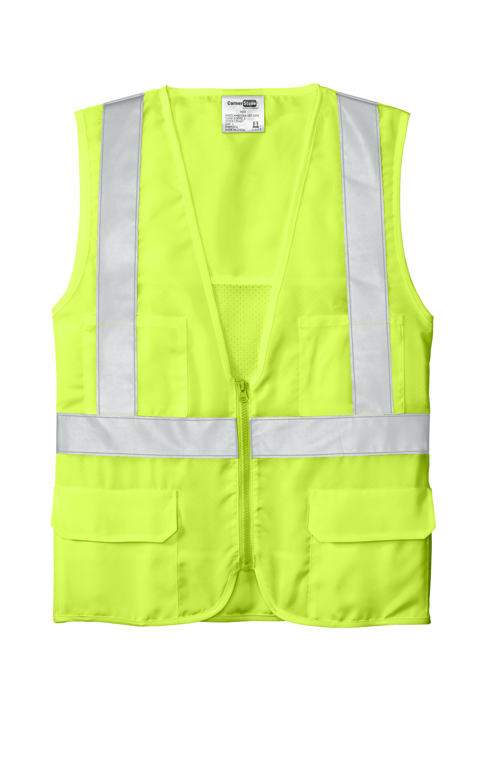 This garment must be fully zipped to be in compliance with ANSI/ISEA 107 standards