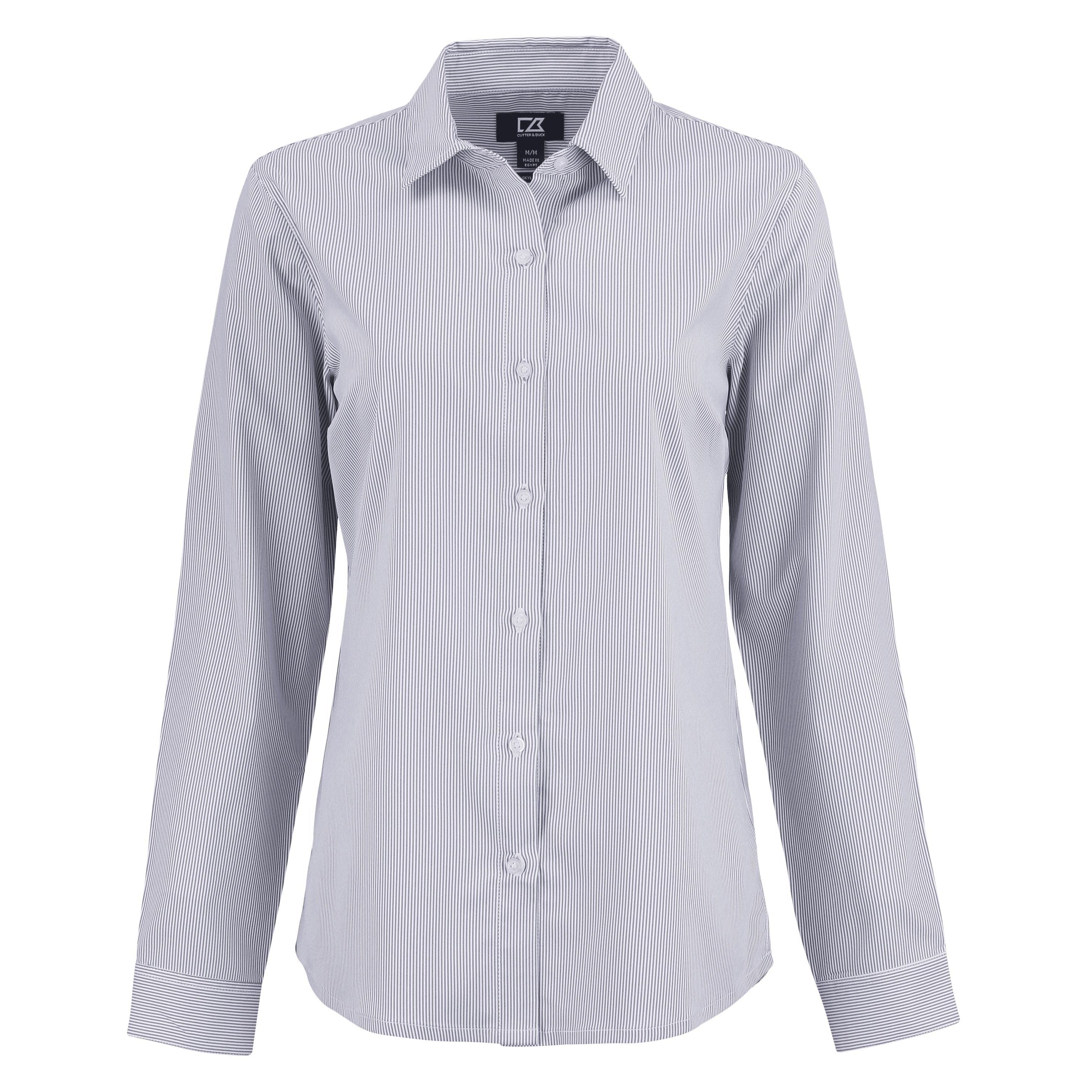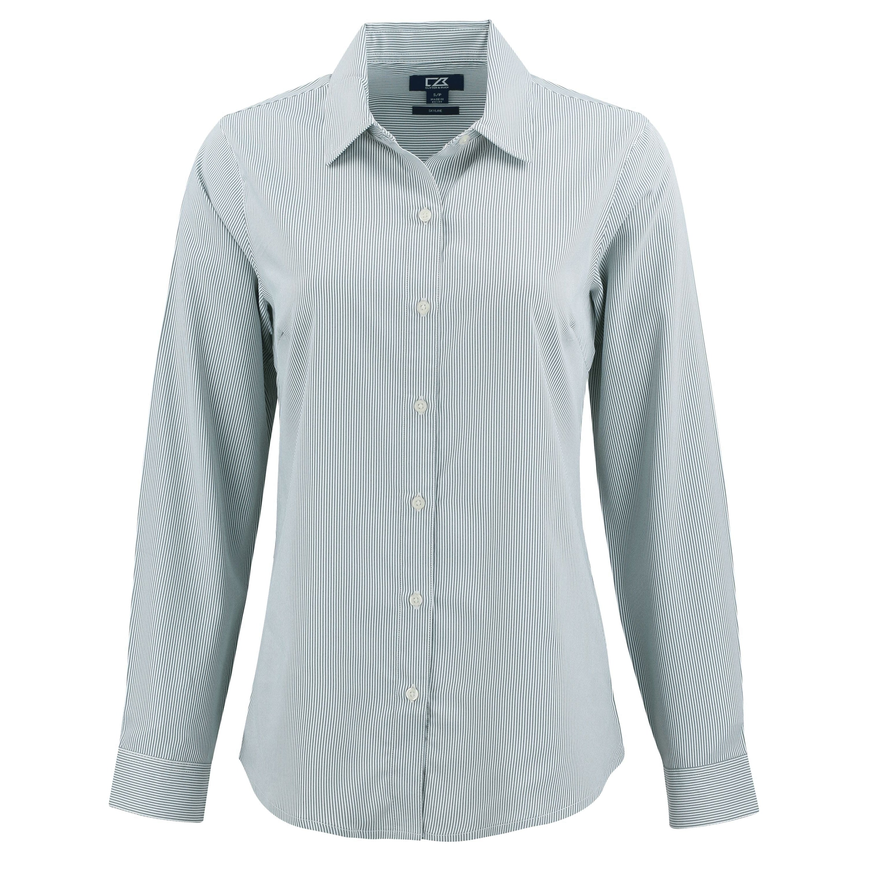 The iconic Skyline Epic Confidence Recycled Pinstripe Womens Long Sleeve Dress Shirt is engineered with innovative work-to-weekend performance fabric for exceptional versatility. Crafted to instill confidence, and engineered with high quality certified eco-friendly recycled polyester spandex weave for lightweight comfort and breathability, the Skyline will be your favorite womens patterned long sleeve dress shirt for work, travel, the big pitch, then happy hour. With the Skyline's PFAS free stain resistant finish and all-day recovery, you'll look and feel ready to create the next big thing.