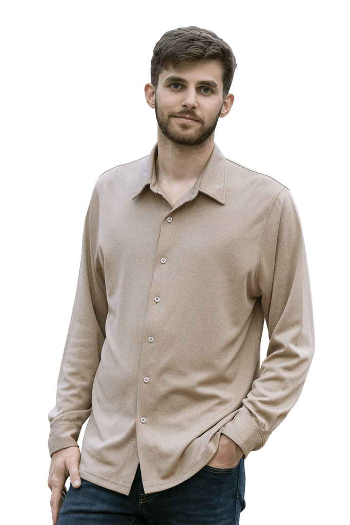 Casual, knit version of the traditional button-down is serious about its surroundings. Made with Repreve premium recycled polyester, each Eureka Shirt accounts for the recycling of 12 plastic bottles. 50% recycled polyester/50% polyester, 5 oz., pique, moisture wicking, spread collar, shirttail hem.