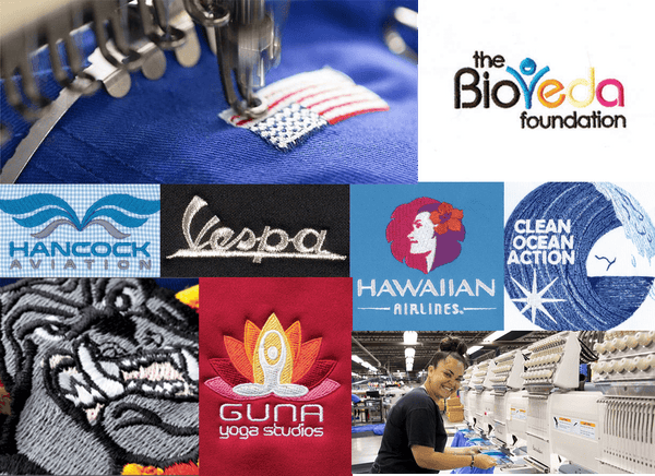 We offer embroidery FREE on all fabric items we sell regardless of the number of colors up to 10k stiches. If your logo is highly detailed or on the larger side (seals, elegant emblems, etc.) we may reach out to you to talk about our low Stitch Overage fee or best application!