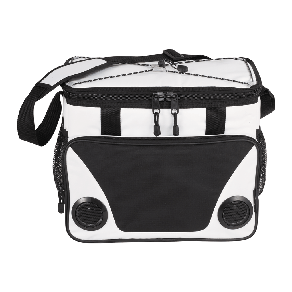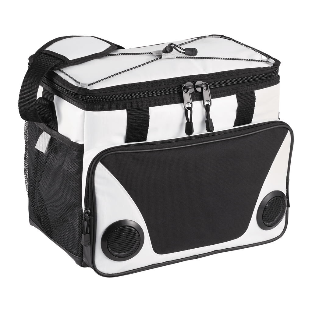 Made with Deep Freeze® high performance insulation, an integrated heat barrier and Cold Block™ base help keep still ice for 2 days! Main compartment hold up to 24 cans. Includes two mounted Bluetooth compatible speakers that work with any device with Bluetooth capability. Simply pair the speakers to your device and stream your favorite movie or music. Battery life of Bluetooth speakers lasts approx. 3-4 hours under mid-volume, or 2-3 hours under maximum volume.
