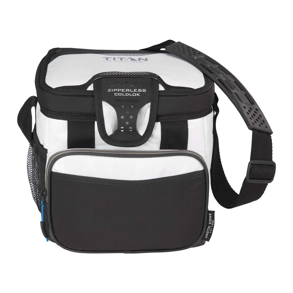 The Arctic Zone Titan Deep Freeze Hardside 9 Can Cooler features Deep Freeze™ high performance insulation with radiant heat barrier and a triple layer ColdBlock™ base to create superior cooling. There is a “flip-open”, patented Zipperless™ lid that provides quick access to food and drinks and an insulated front pocket. The Rhino-Tech® exterior is tough, water resistant and wipes clean easily. The interior features a durable HardBody® liner. Designed for convenience and usability, this cooler also features an adjustable Backsaver® shoulder strap with shoulder pad that centers load weight to reduce muscle stress.