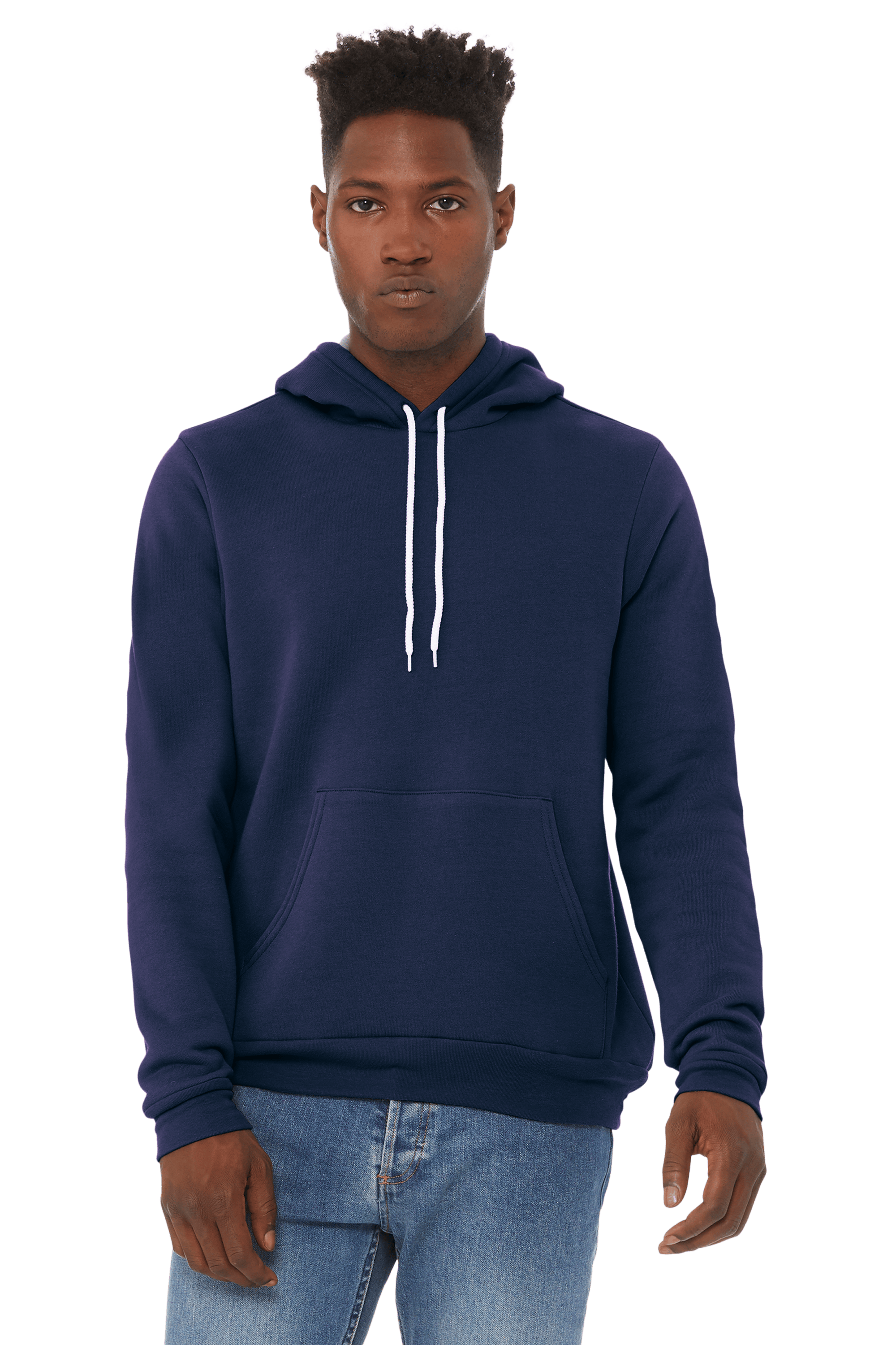 Heather Navy: 8-ounce, 60/40 Airlume combed and ring spun cotton/poly fleece, 32 singles