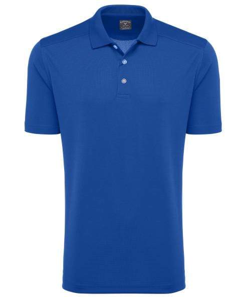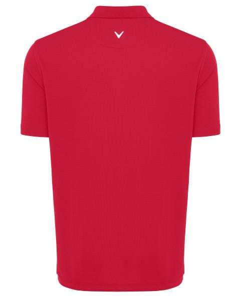 5.6 oz 100% polyester double knit mesh fabric. Opti-Dri technology transfers moisture away from the body to keep you cool and dry. 3-button placket with Callaway embossed buttons. Rib knit collar and open sleeve. Double needle hemmed bottom with side vents. Heat transfer Chevron logo on back neck. Heat transfer Callaway logo on bottom left front.
