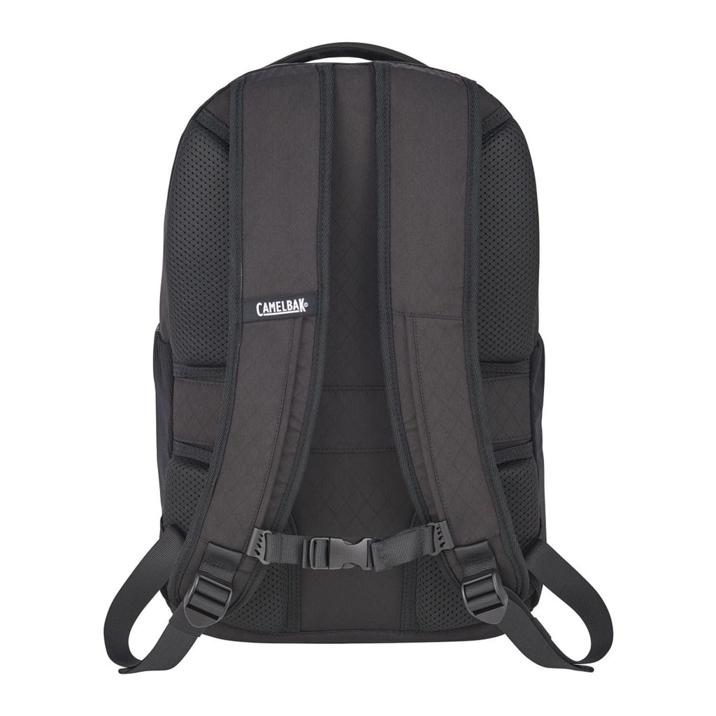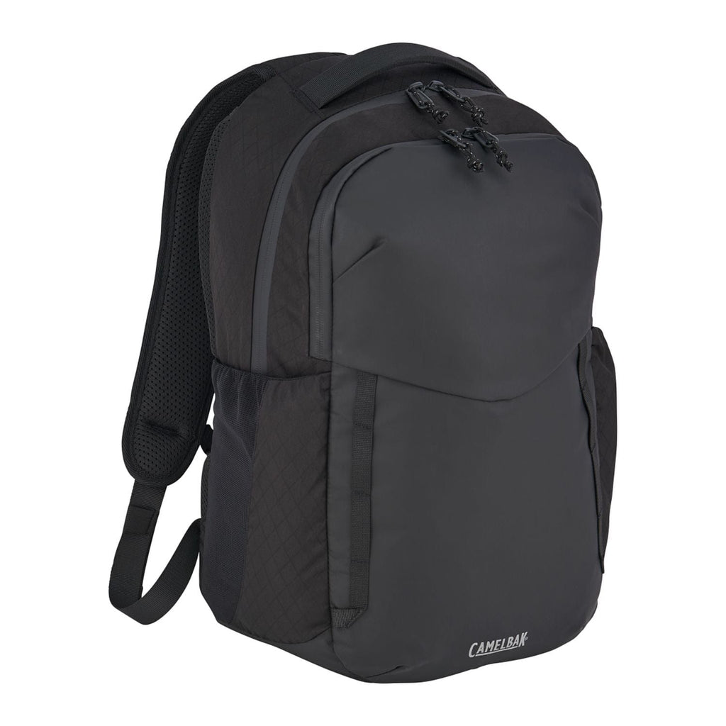 The CamelBak DEN 15" Laptop Backpack is made from coated RPET polyester. A front zippered pocket offers organization and extra storage for quick access. The main compartment includes a 15” padded laptop sleeve. There are two side pockets for water bottles or extra gear. Trolley strap attaches to your luggage or use the padded, adjustable shoulder pads to carry this bag. Through a partnership with 1% For The Planet, one percent of sales of all EcoSmart® products are donated to environmental nonprofits.