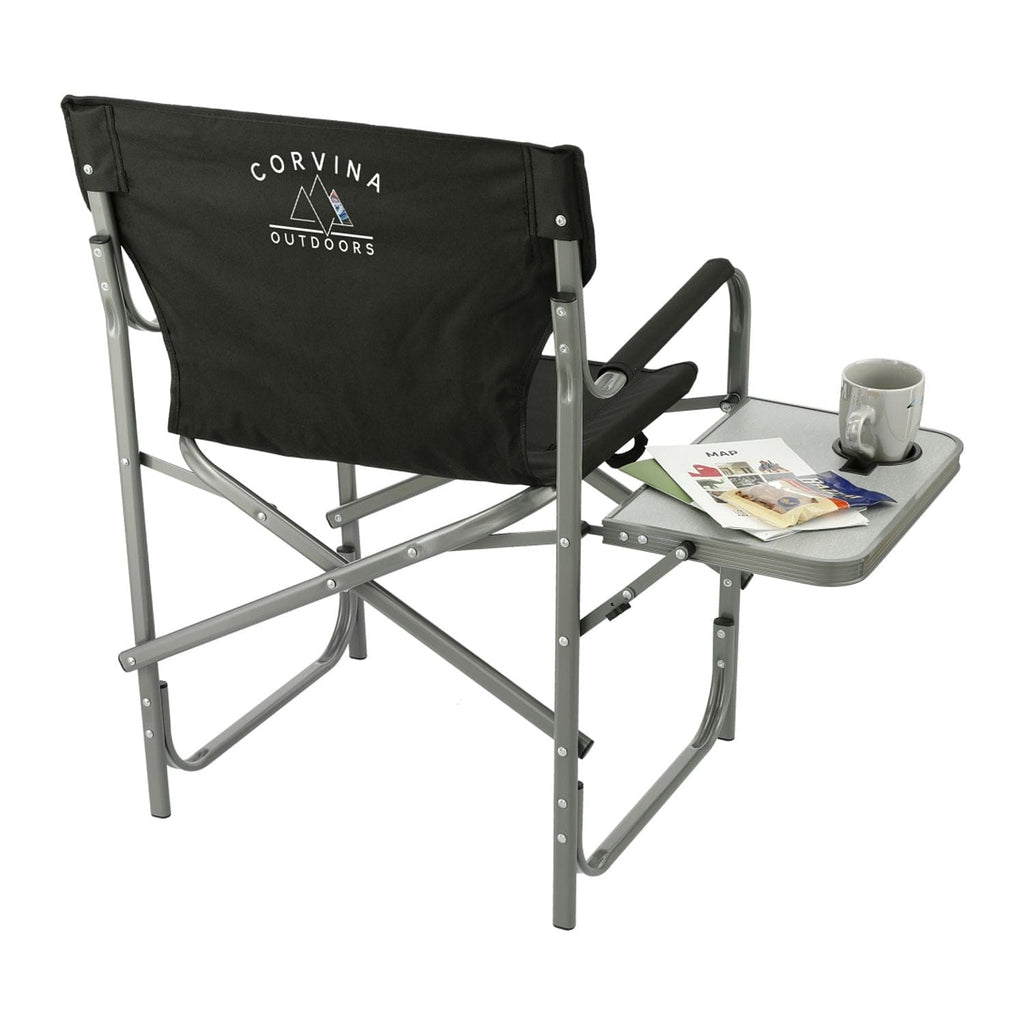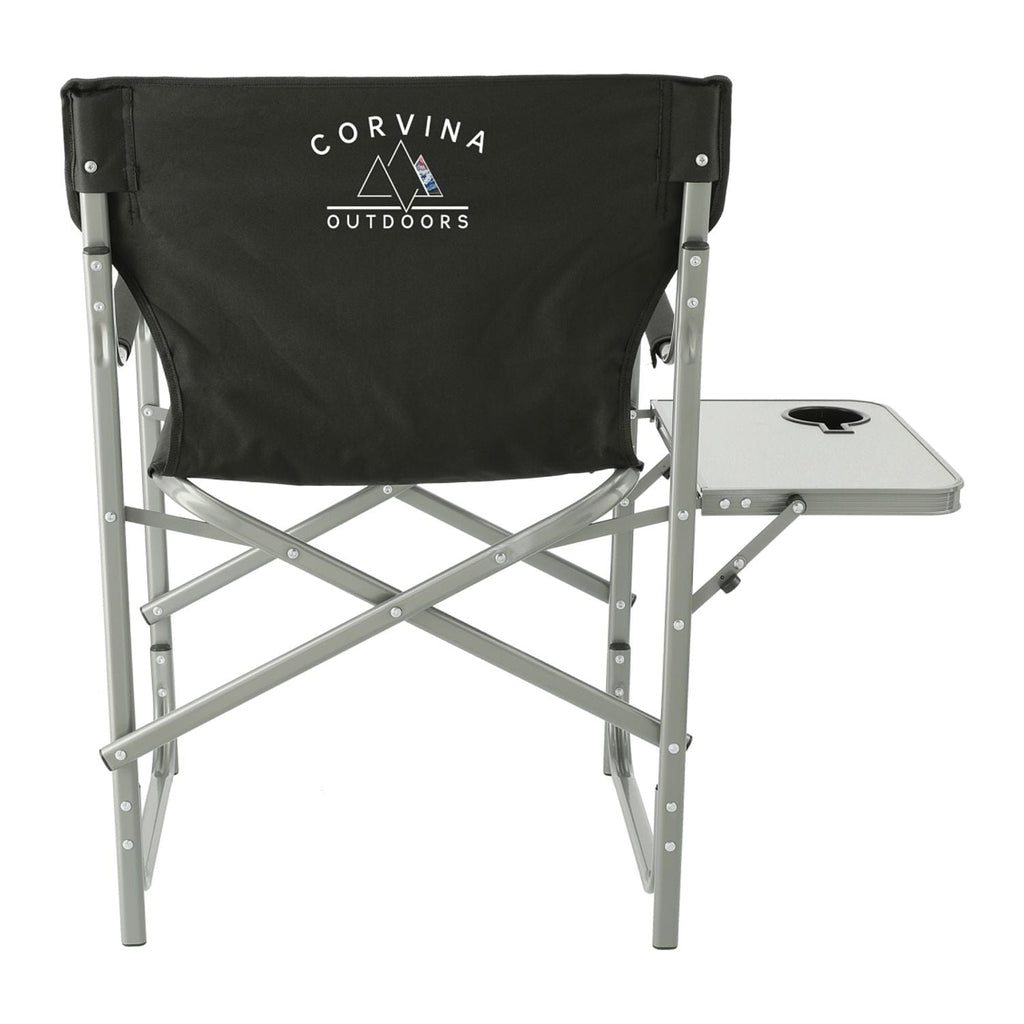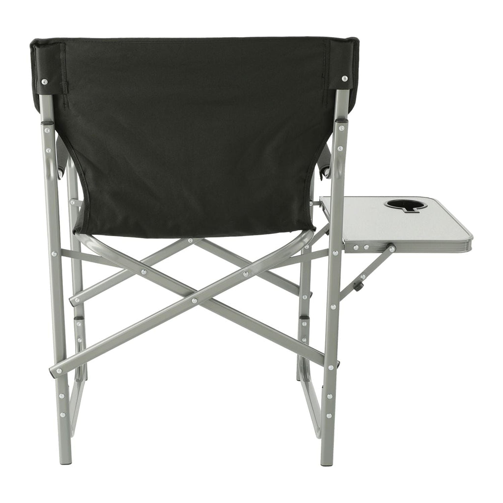 The Director's Chair (300lb Capacity) with Side Table folds flat for easy storage, and its sturdy steel frame and 600d polyester allow for a more upright seating position. This chair is great for any occasion, and with an extendable 15x10'' side table, you can take it anywhere!