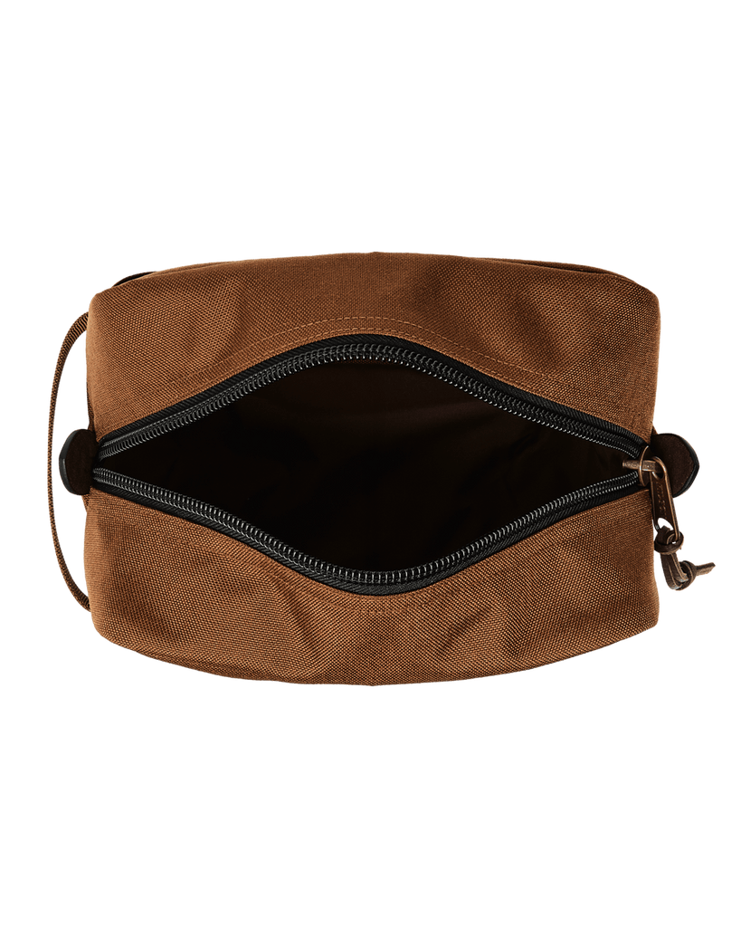 Our Dryden Travel Pack carries shaving needs, a toothbrush, and other travel essentials without weighing you down. It's made from 1000-denier Cordura nylon, a lightweight, durable material that shares the same weave with heavier ballistic nylons. Cordura is legendary for its resistance to abrasion and tearing. The interior is lined with lightweight nylon for added protection in case of leaking contents. Exterior stow pocket on one side.
