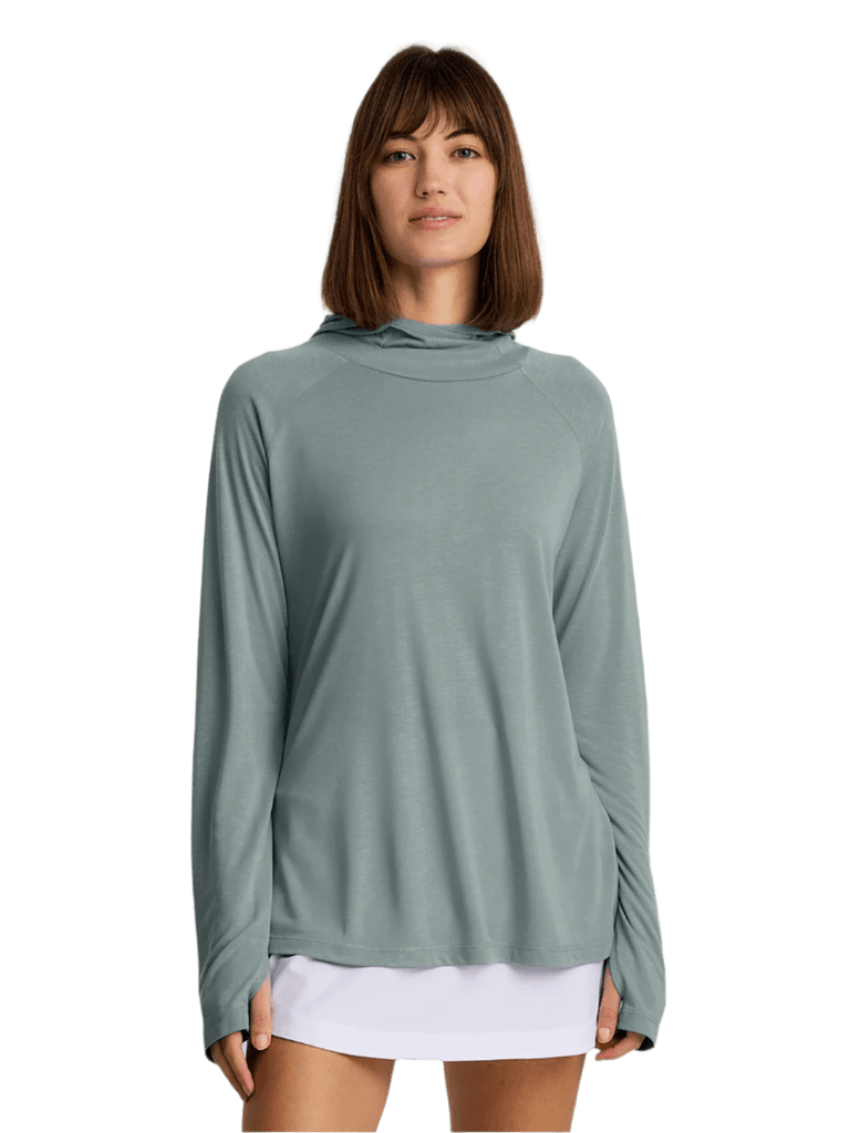 The Bamboo Lightweight Hoodie II is the second generation of this women’s style, now with an updated and super dialed fit. This buttery soft and lightweight layer is built for long days on the water—equipped with a crossover hood and thumbholes for ultimate all-day sun coverage. Incredibly breathable and naturally odor-resistant, it offers a UPF 20+ rating so you can comfortably handle any warm-weather adventure. Pair it with our Cropped Breeze Pant for all-over sun protection when shade is hard to come by.