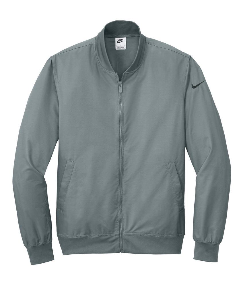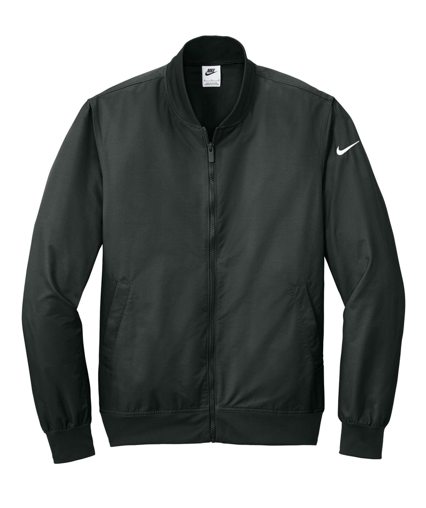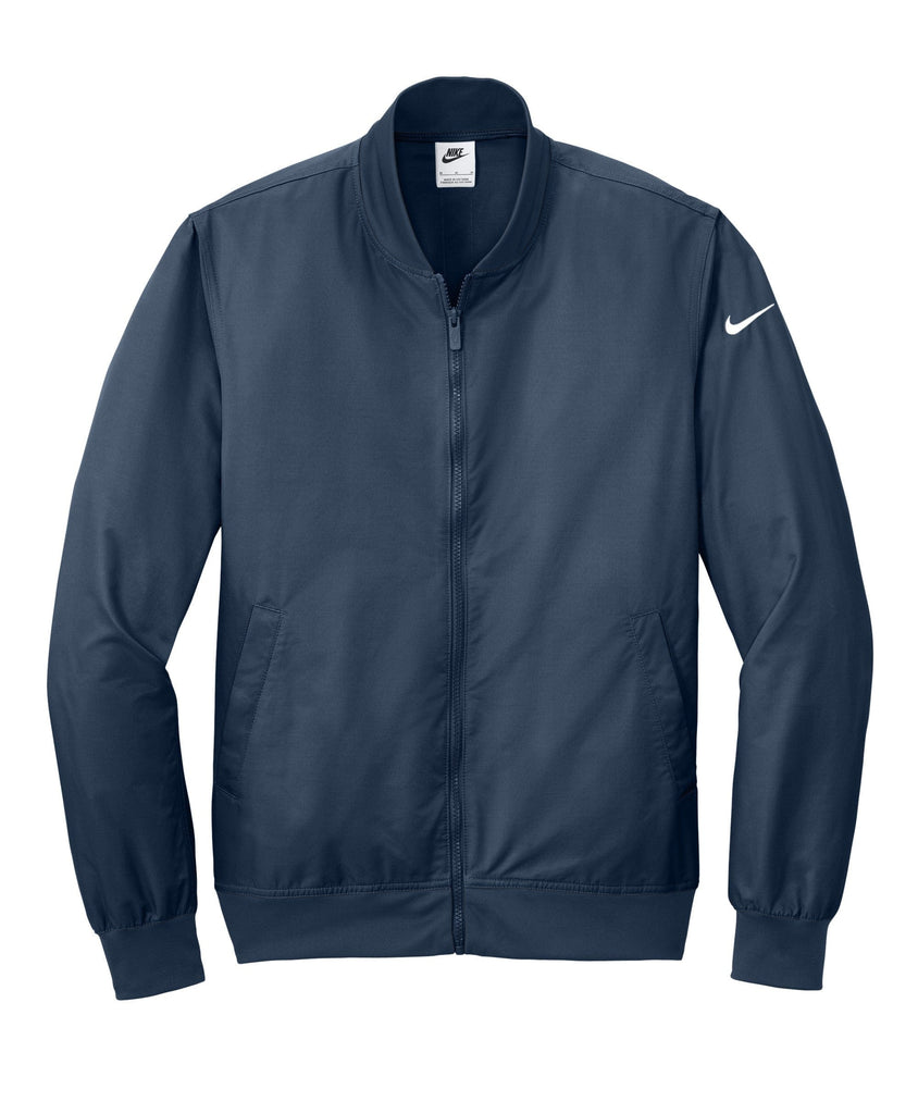 Keep your look clean and classic with this bomber that works just about anywhere. Details include a rib knit collar and cuffs, dyed-to-match zipper and snap-front pockets. The contrast embroidered Swoosh logo is on the left sleeve and woven label at the back. Made of 5-ounce, 62/38 cotton/nylon.