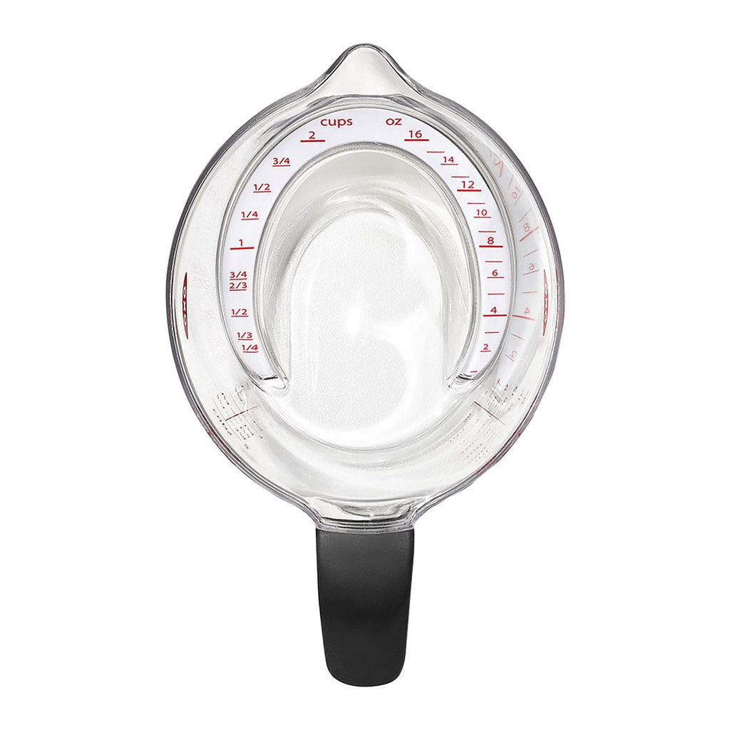 Say goodbye to bending to check your liquid measurements. The OXO Good Grips 2-Cup Angled Measuring Cup makes everything from crafting cocktails to whipping up vinaigrettes easier, thanks to our revolutionary design that allows you to read the measurement by simply looking down into the Cup. This Cup from OXO is a favorite with Good Housekeeping magazine editors because the patented angled surface inside lets you easily read cup, ounce and milliliter markings from above. This lightweight, BPA-free Cup is made of Tritan™ Renew plastic. It has a non-slip handle and a generous spout that let you pour with comfort and control. Also available in Mini, 1-Cup and 4-Cup versions. Handwash Only.