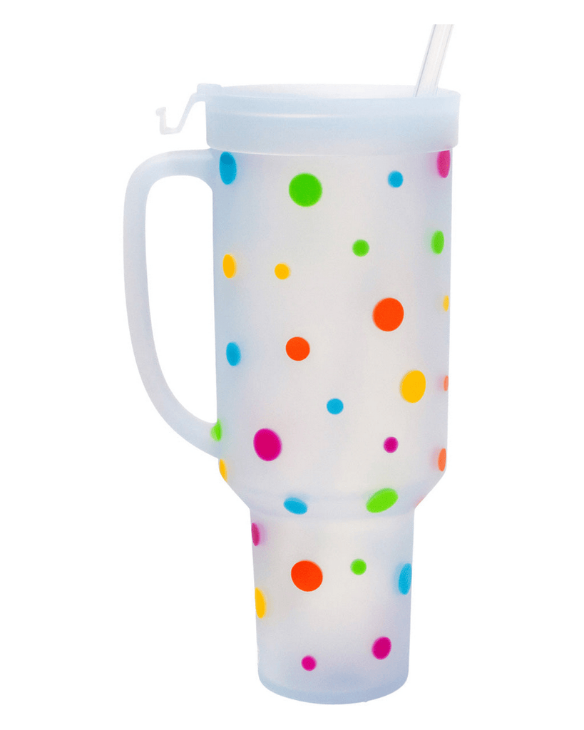 Get ready to crush your thirst! Meet the WTFumbler – the ultimate hydration heavyweight. This gargantuan 64oz straw tumbler is redefining what it means to stay hydrated. Don’t let its size fool you, we’ve engineered it to fit perfectly in your cup holder and comes with an ergonomic handle for easy carrying. Available in vibrant new colors and featuring our drip-defying flip lid that guarantees a leak-free experience no matter where your day takes you. This beast holds a full growler's worth of liquid, making it the undisputed champ of tumblers. Unleash your thirst-quenching potential with the WTFumbler!