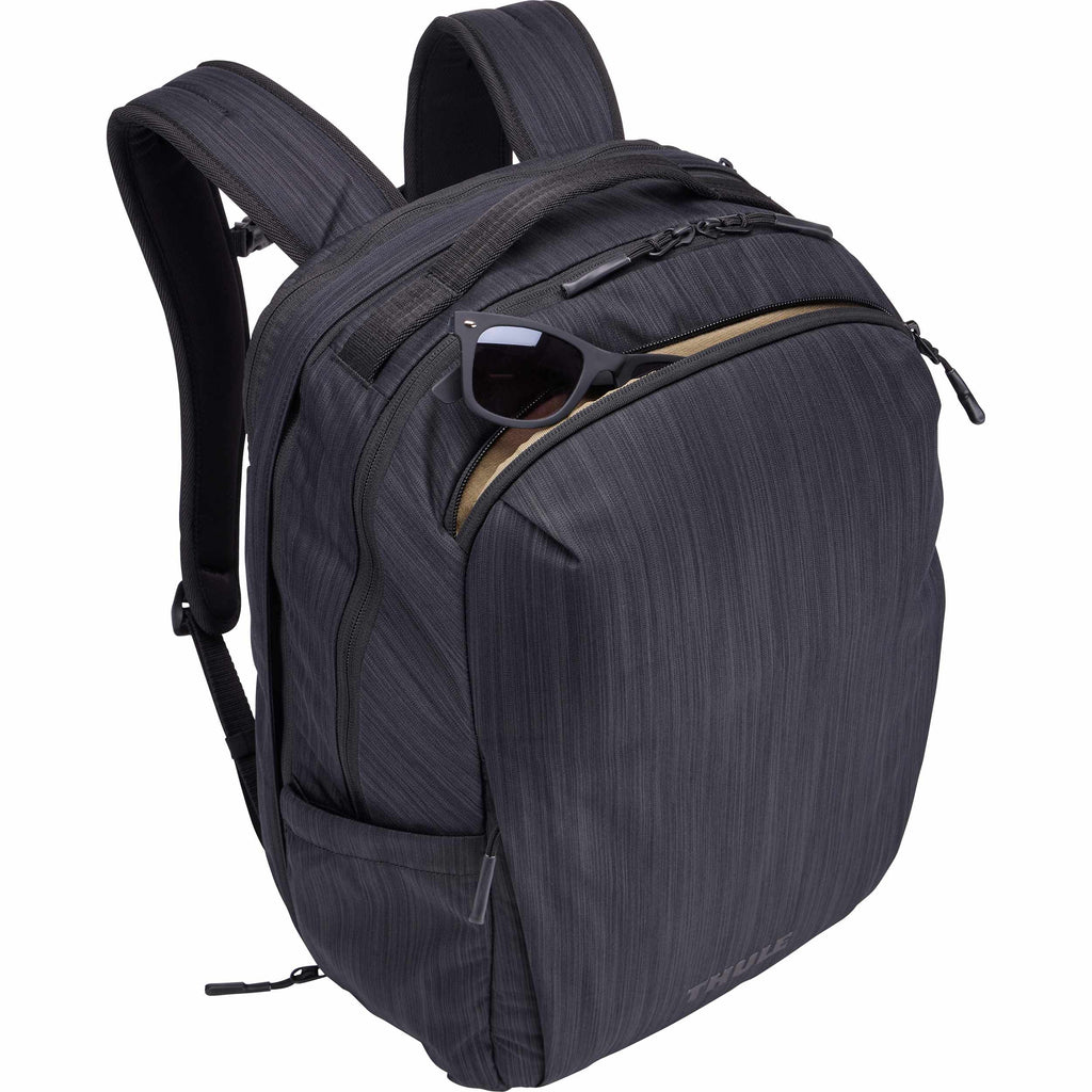 The Thule Stravan 2.0 Backpack combines sleek design with versatile functionality, making it perfect for both the office and travel. Crafted from 100% recycled body fabric, lining, and webbing, this Bluesign® certified backpack features a dedicated padded compartment to protect laptops up to 16''. For added convenience, it includes a trolley strap, water bottle pockets, and an expandable panel, allowing you to increase the storage capacity from 24L to 30L.