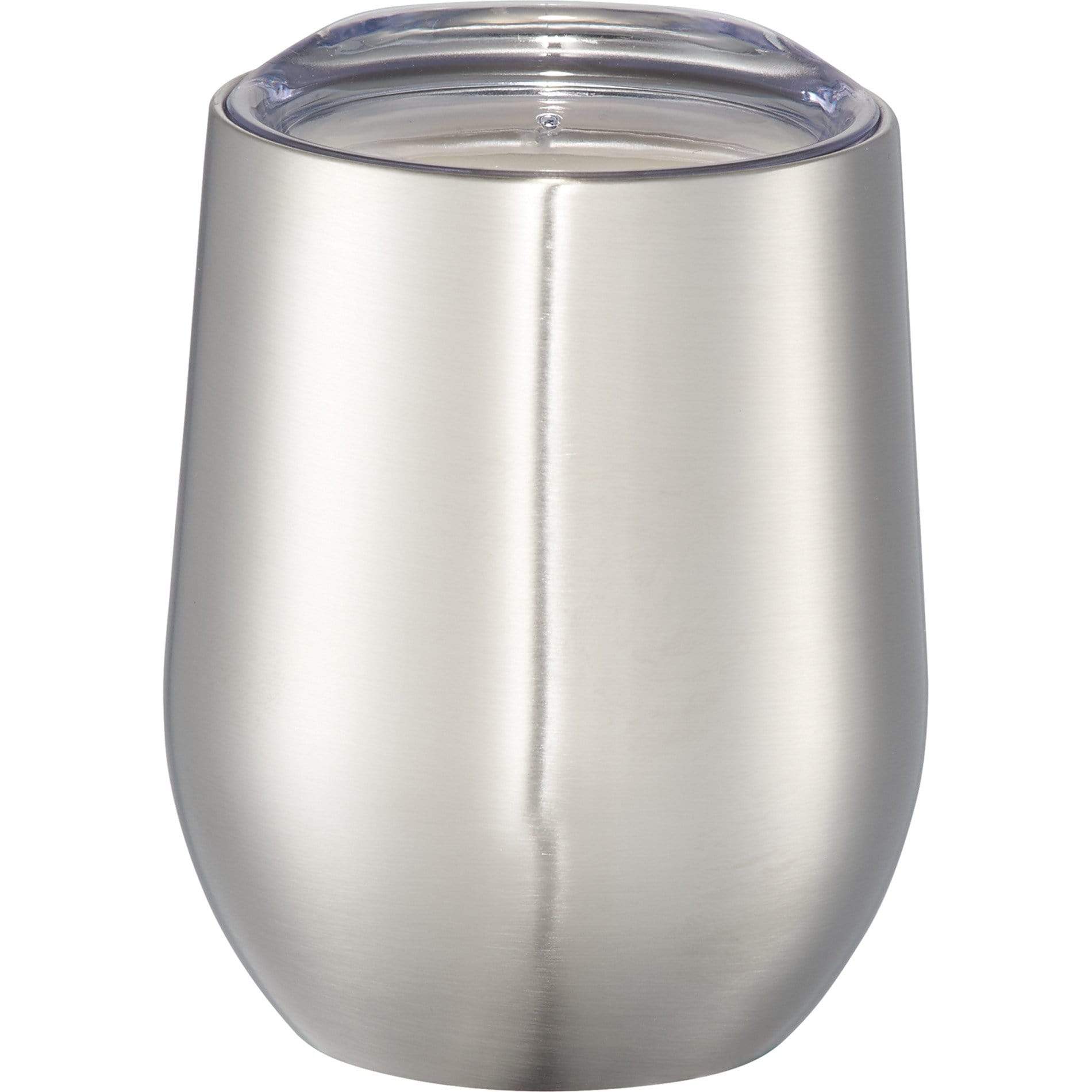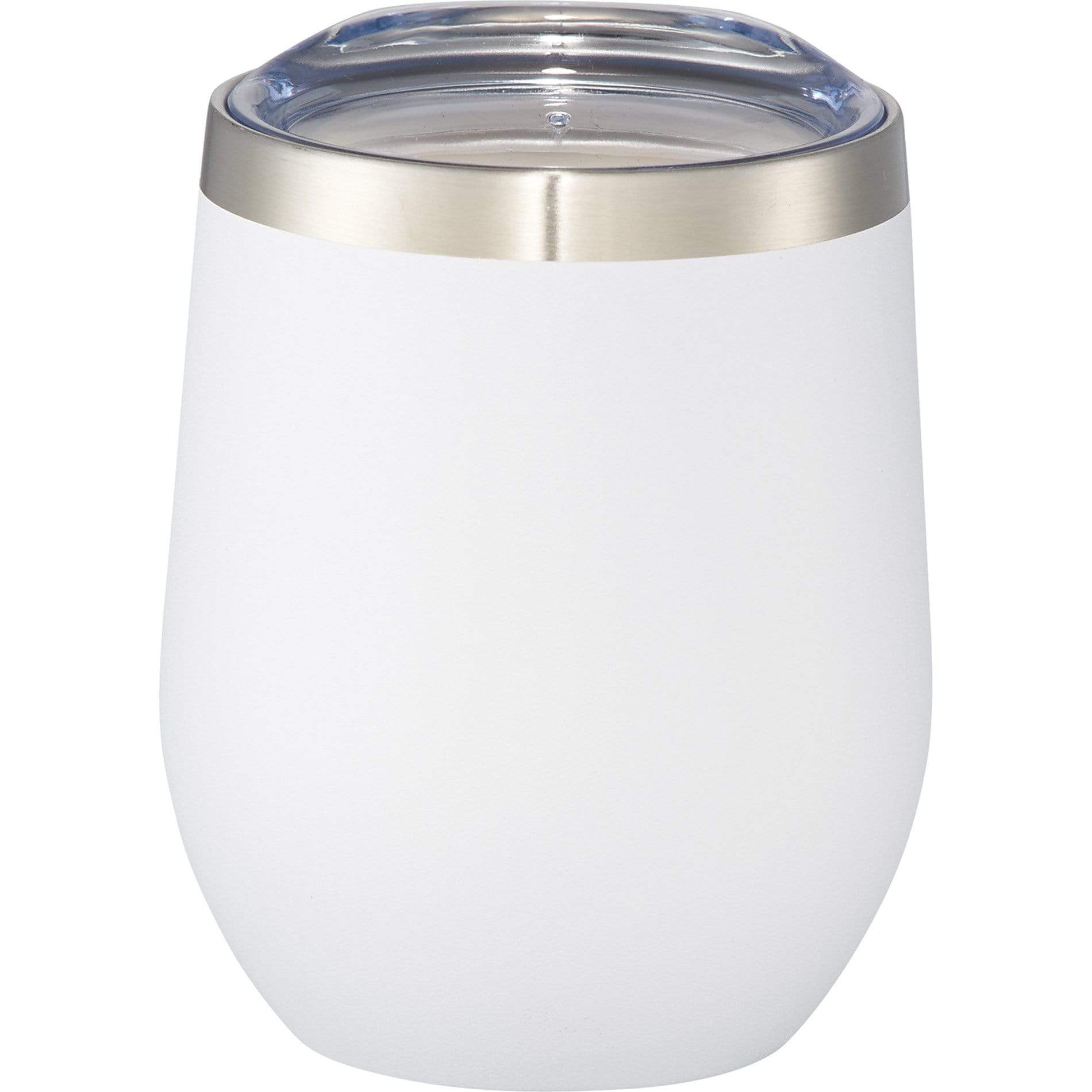 Enjoy your drink at any moment! Durable, double-wall 18/18 stainless steel vacuum construction with copper insulation, which allows your beverage to stay cold for 24 hours and hot for at least 6 hours. The construction also prevents condensation on the outside of the tumbler. Perfect accessory for wine. Easy sipping, push-on lid. Wide opening for comfortable filling and pouring. Durable powder spray color. 12oz.