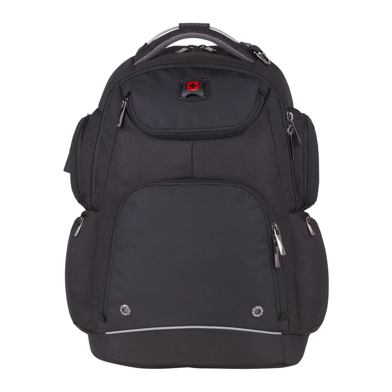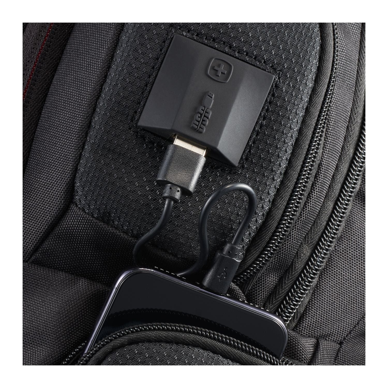 The Wenger Odyssey TSA Recycled 17" Computer Backpack has ample space for organizing all your gear, and it's made from eco-friendly RPET. This bag features a TSA-friendly 17” computer sleeve and tablet sleeve for easy travel. It also features an organizational front pocket with key fob, easy-access valuables compartment on top, an additional zippered mesh pocket on interior front wall, and zippered side pockets, ensuring you have a place for everything. Charge your device easily with the dedicated USB port and cable compartment. This bag features Wenger® Airflow moisture-wicking mesh and a back webbing trolley sleeve.